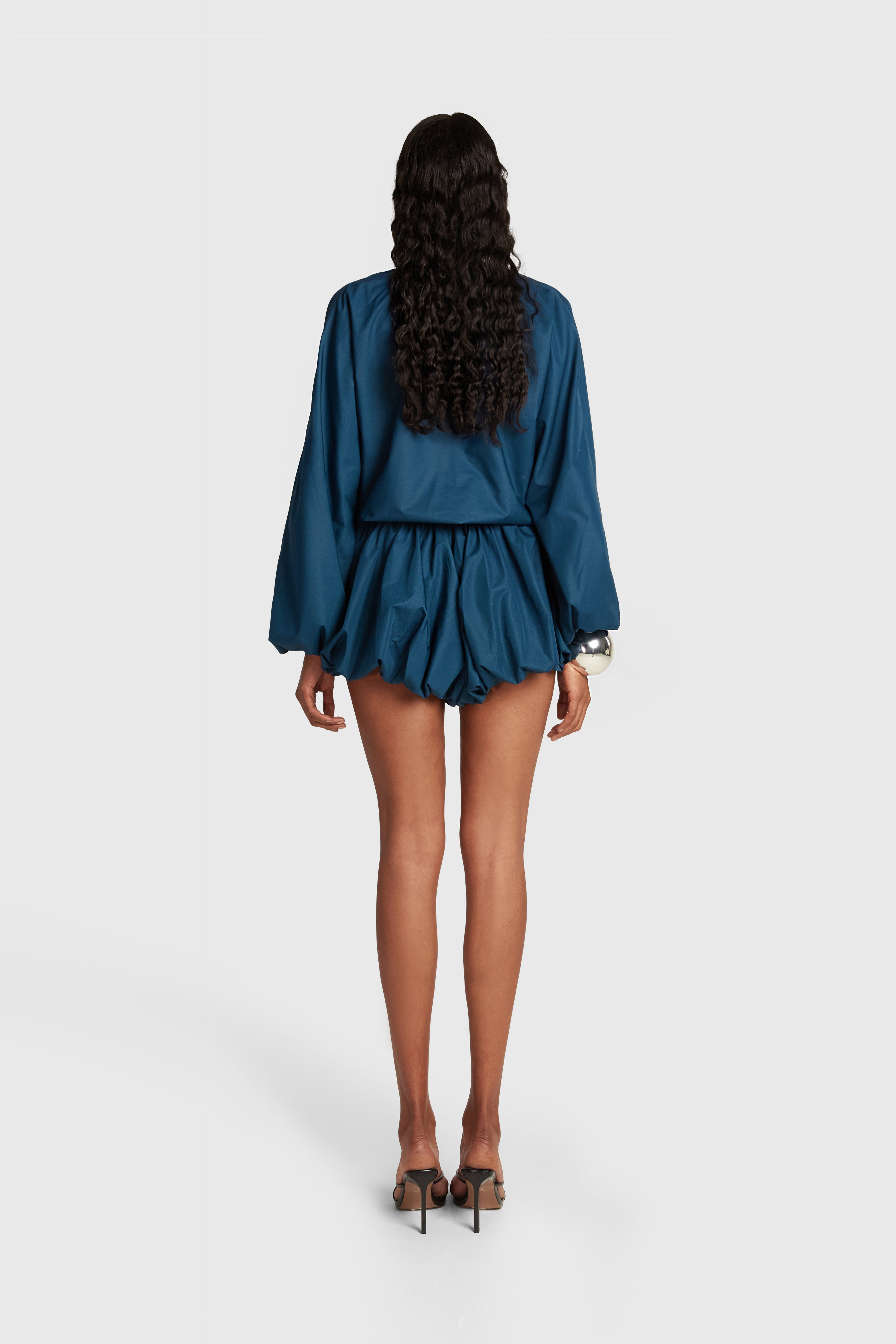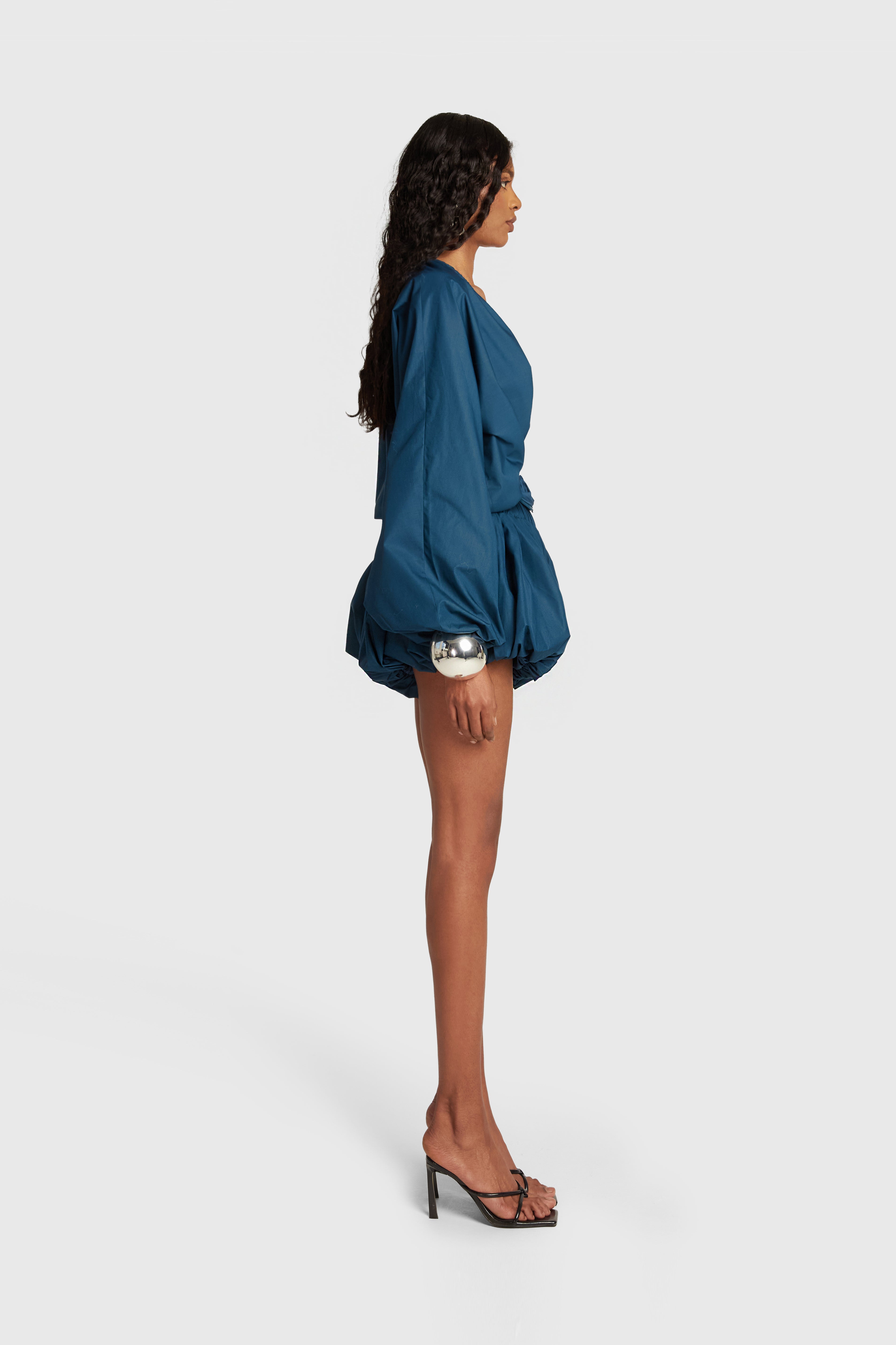 Front open relaxed shirt with bubble hem sleeves and front twist.