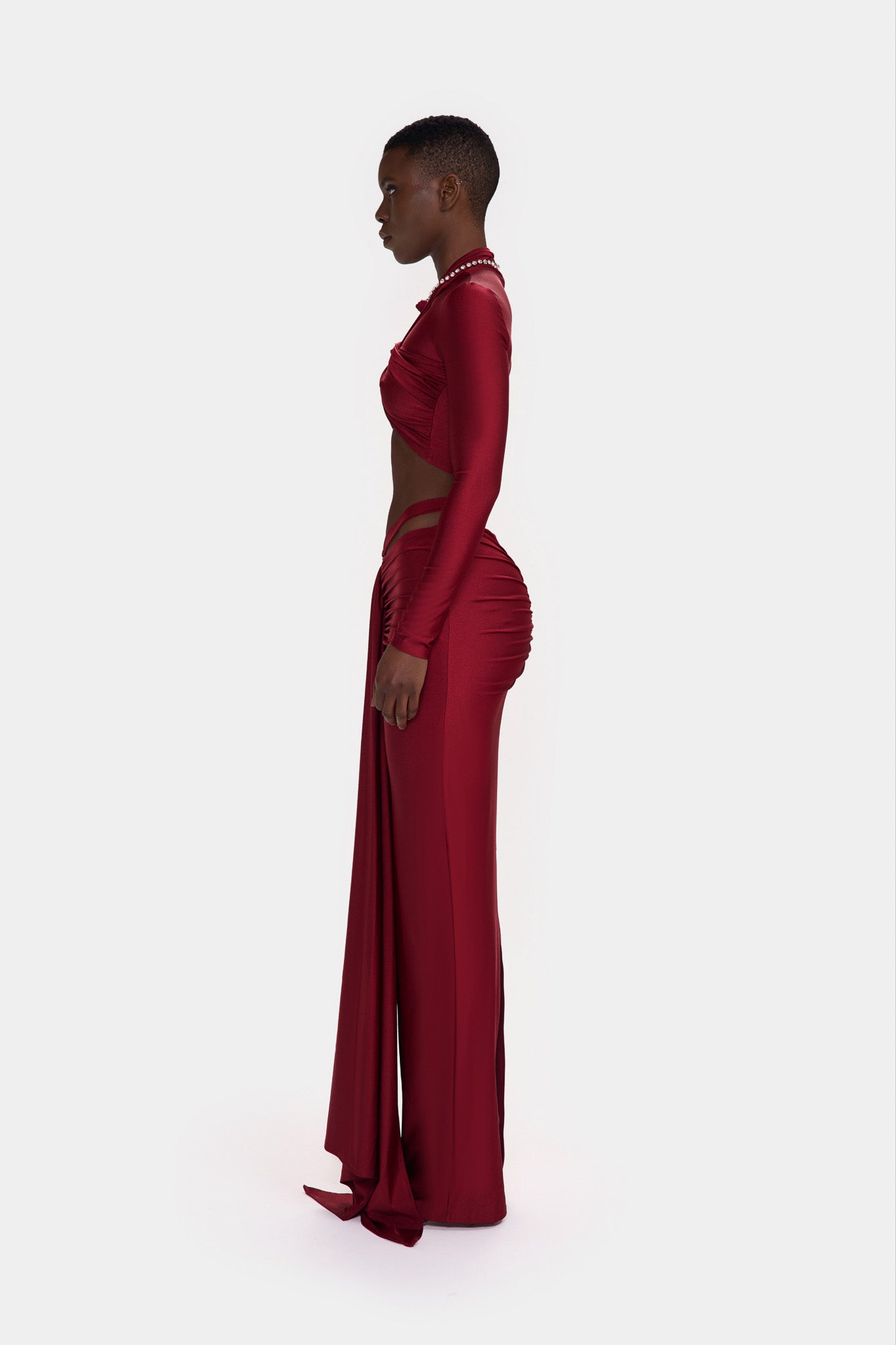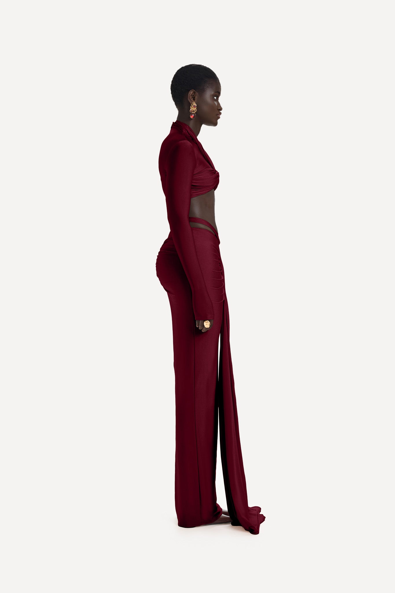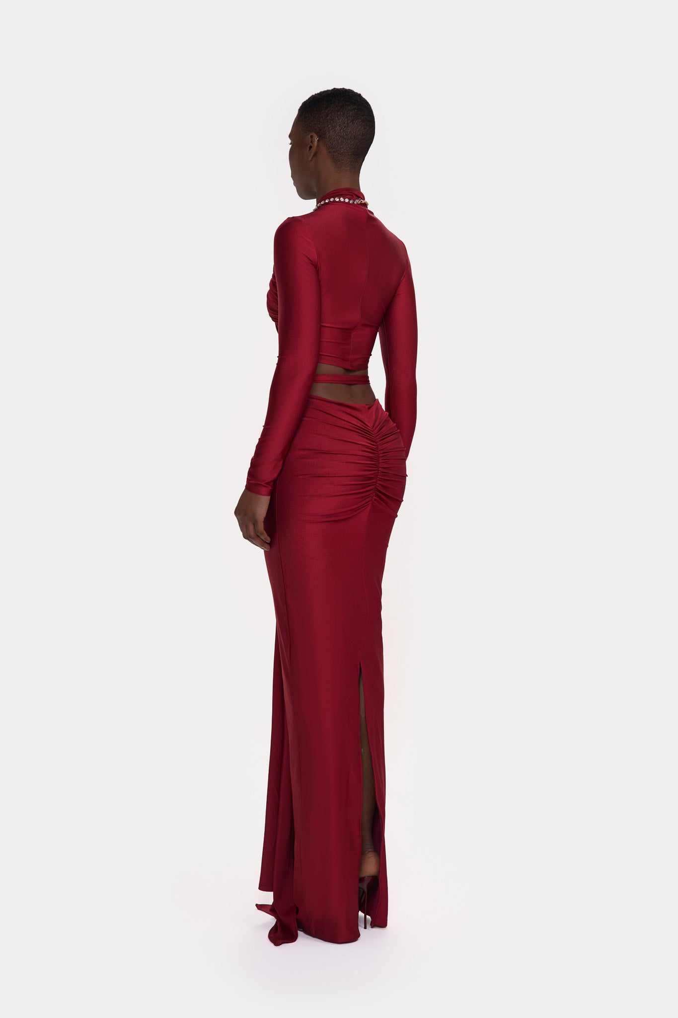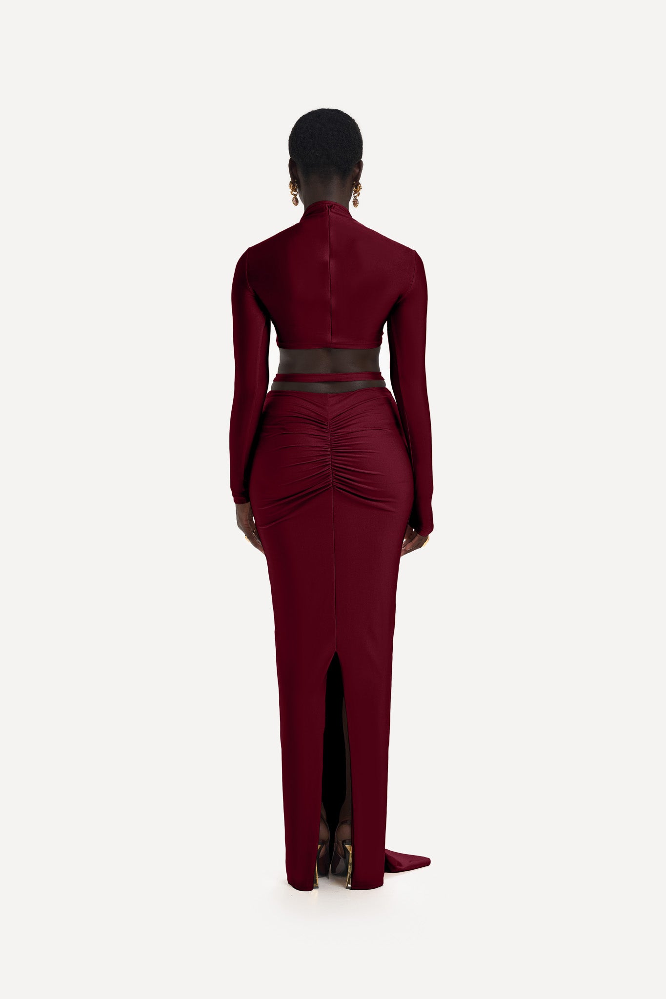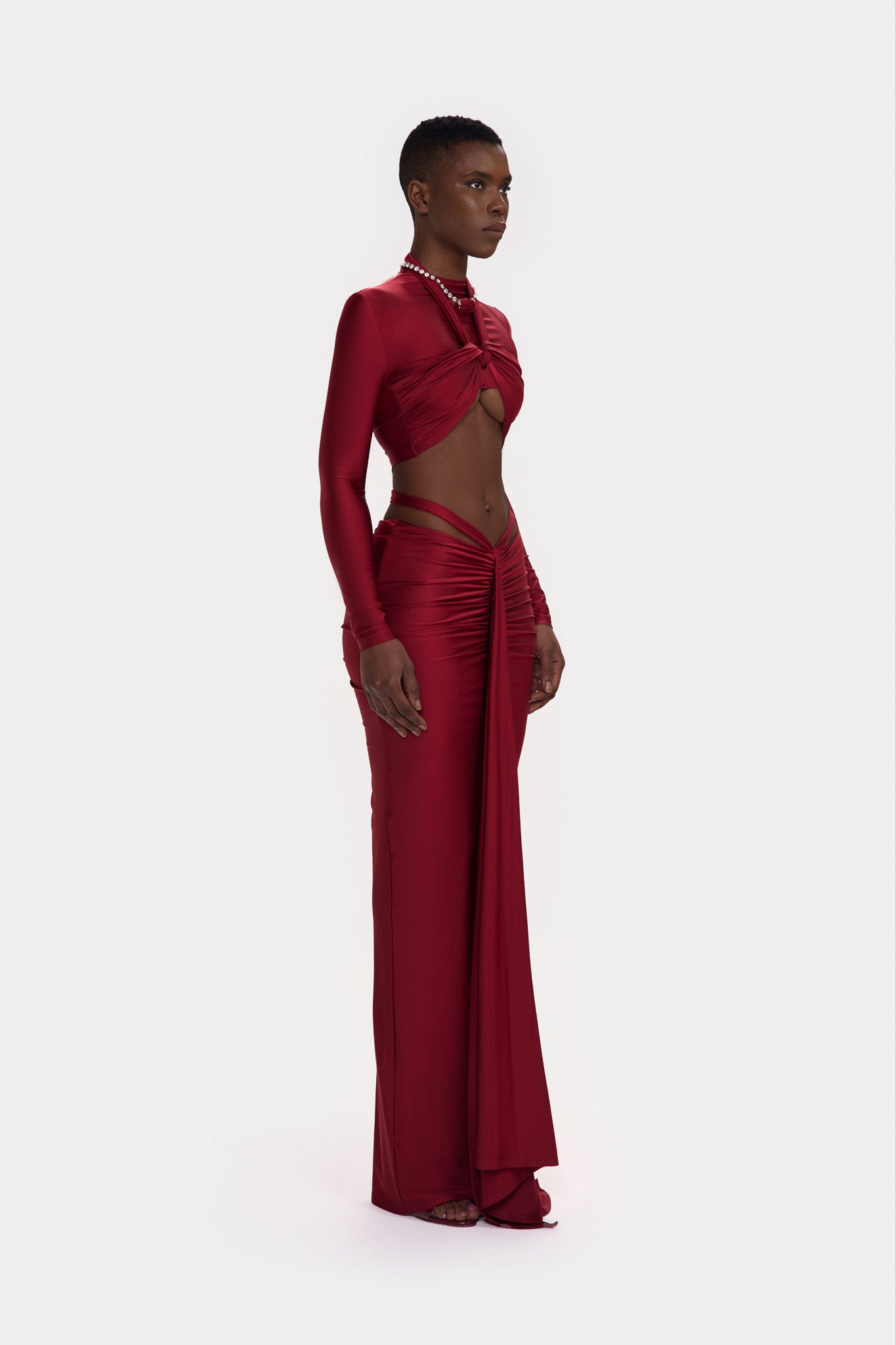 Looking for an easy to wear 2 piece that will take you from day to night? The KESH set is IT! With a long front drape to elongate your silhouette and ruching on the bum to accentuate, the Kesh maxi skirt is simple yet creates all the drama you need! Crop and Maxi skirt sold as separates.