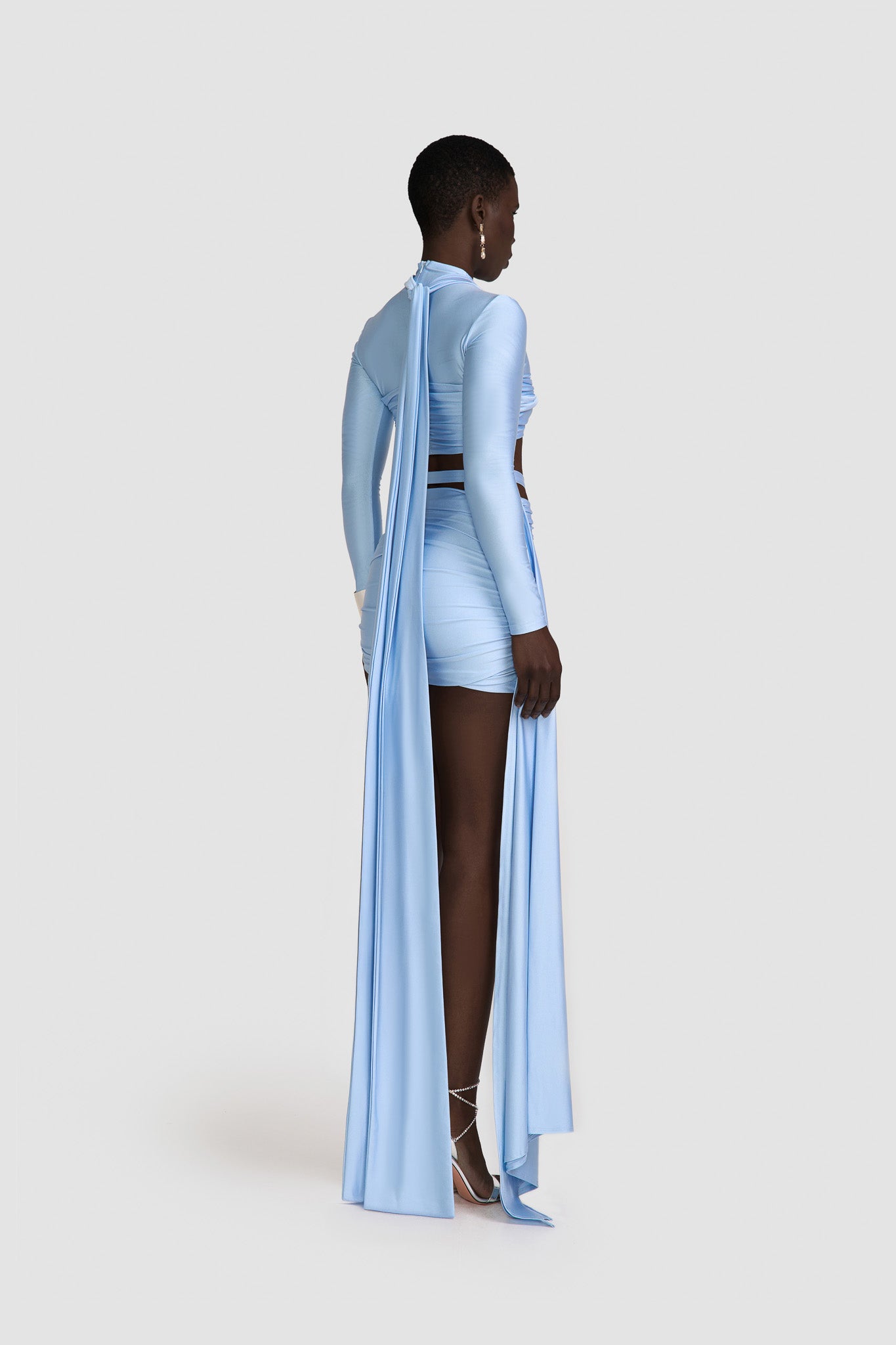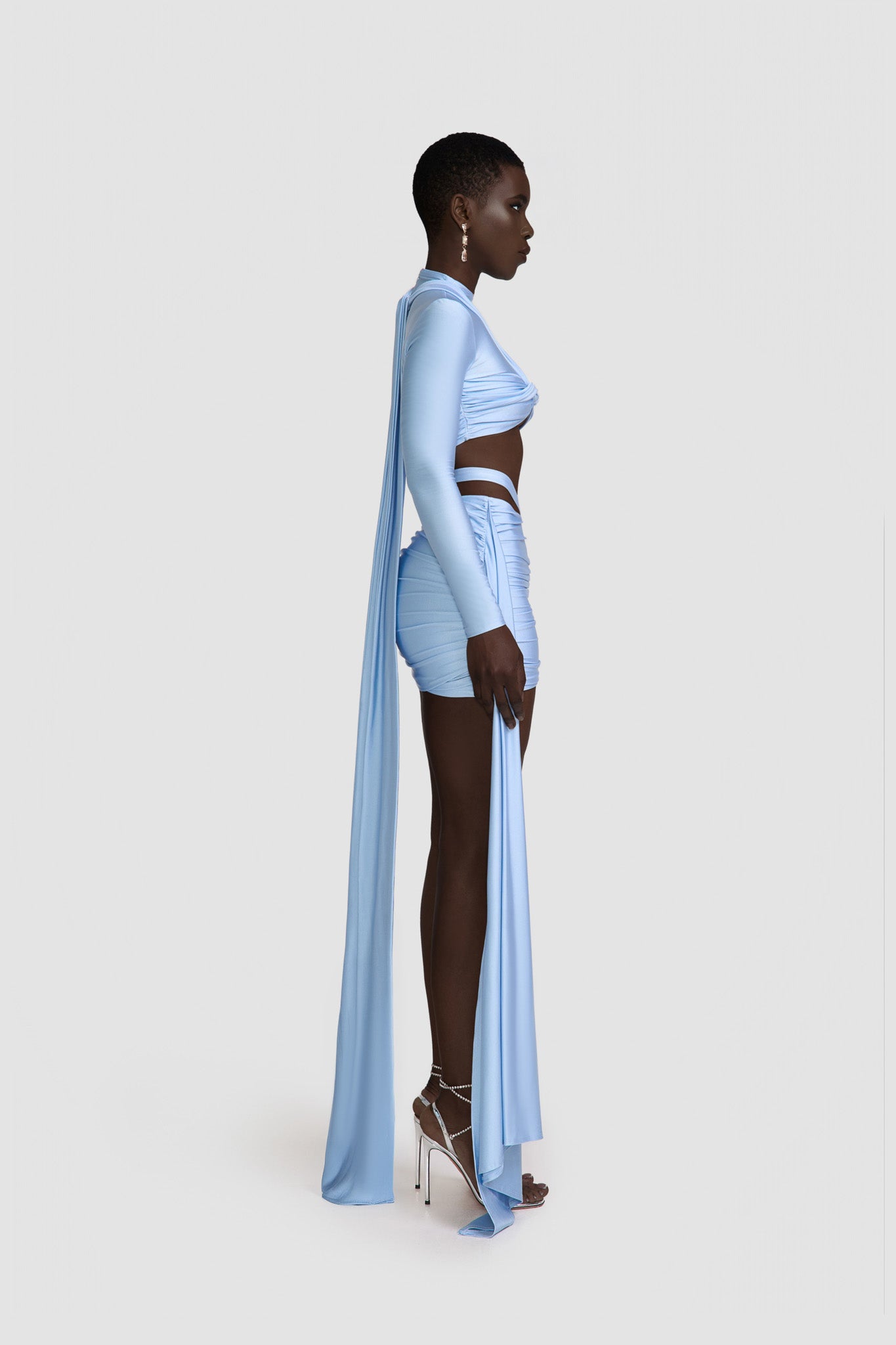 Looking for an easy to wear 2 piece that will take you from day to night? The KESH set is IT! With a long side drape to elongate your silhouette and ruching on the bum to accentuate, the Kesh maxi skirt is simple yet creates all the drama you need! Crop and Mini Skirt sold as separates.
