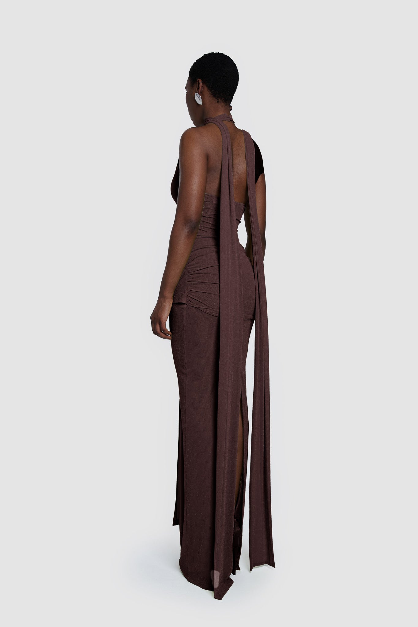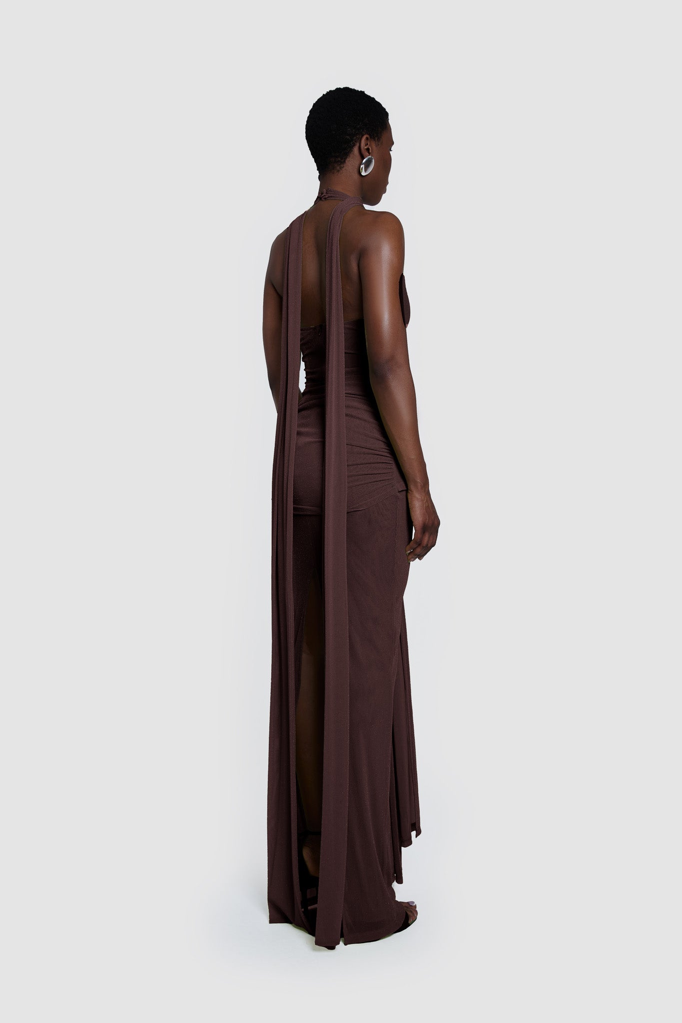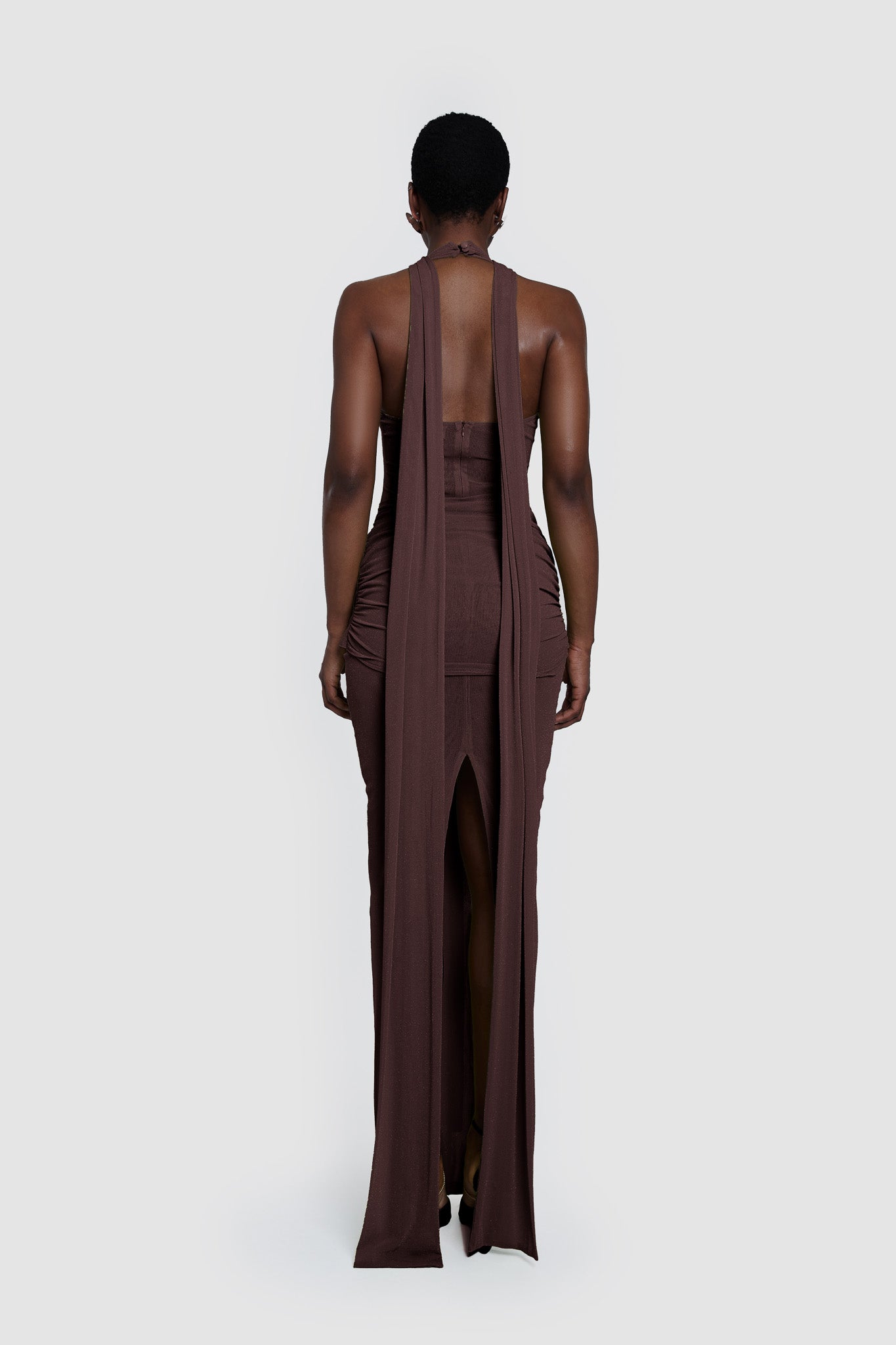 Naomi, she's sleek and sexy! Made with a simple yet stand out, stunning silhouette, this dress is the definition of versatility. Now with a separate scarf that can be tied in many different ways, the styling options are endless!