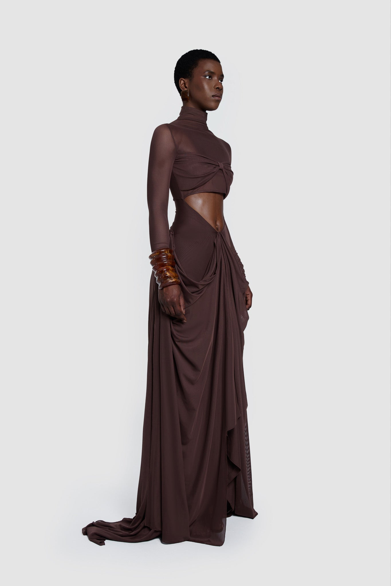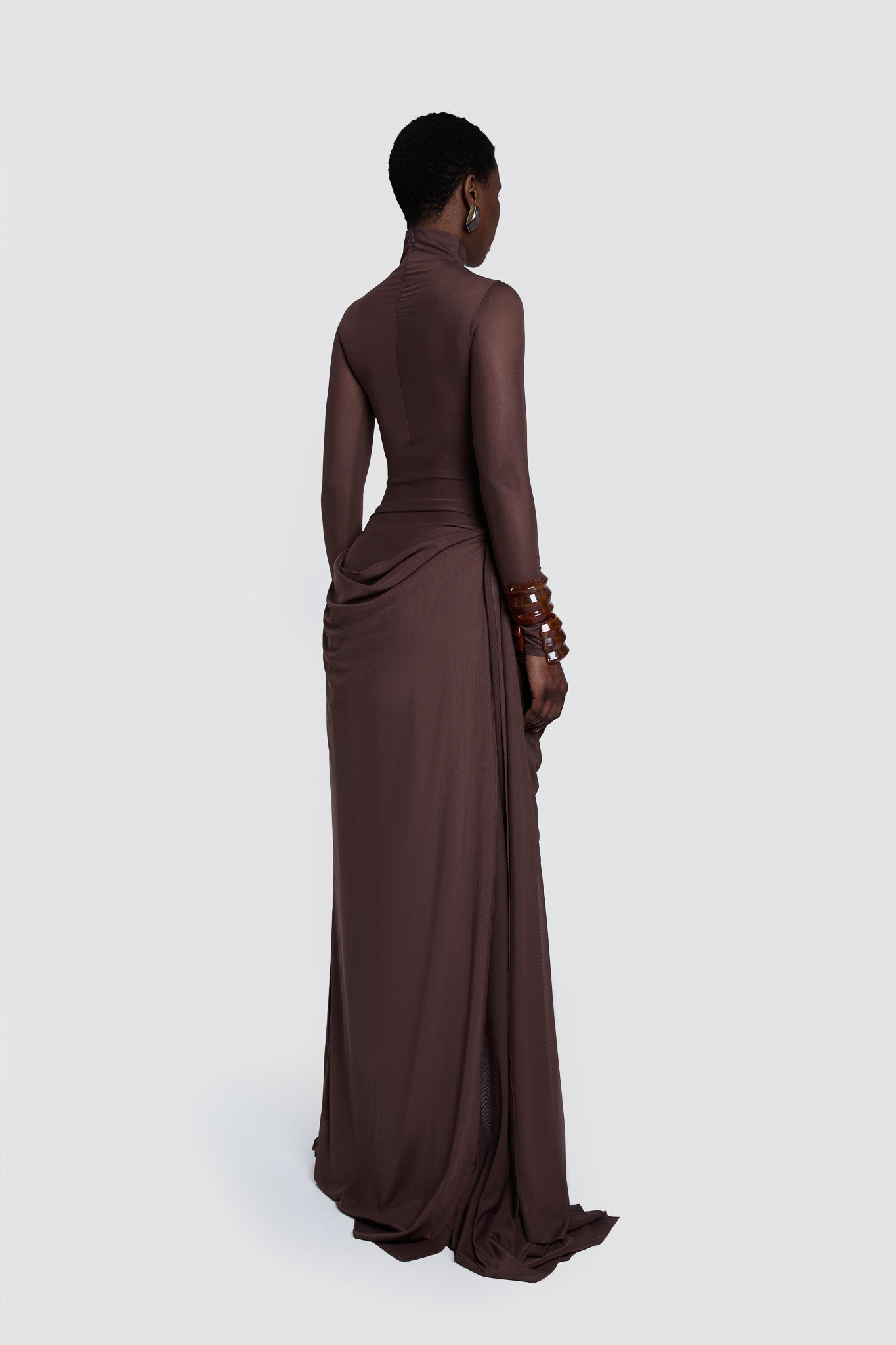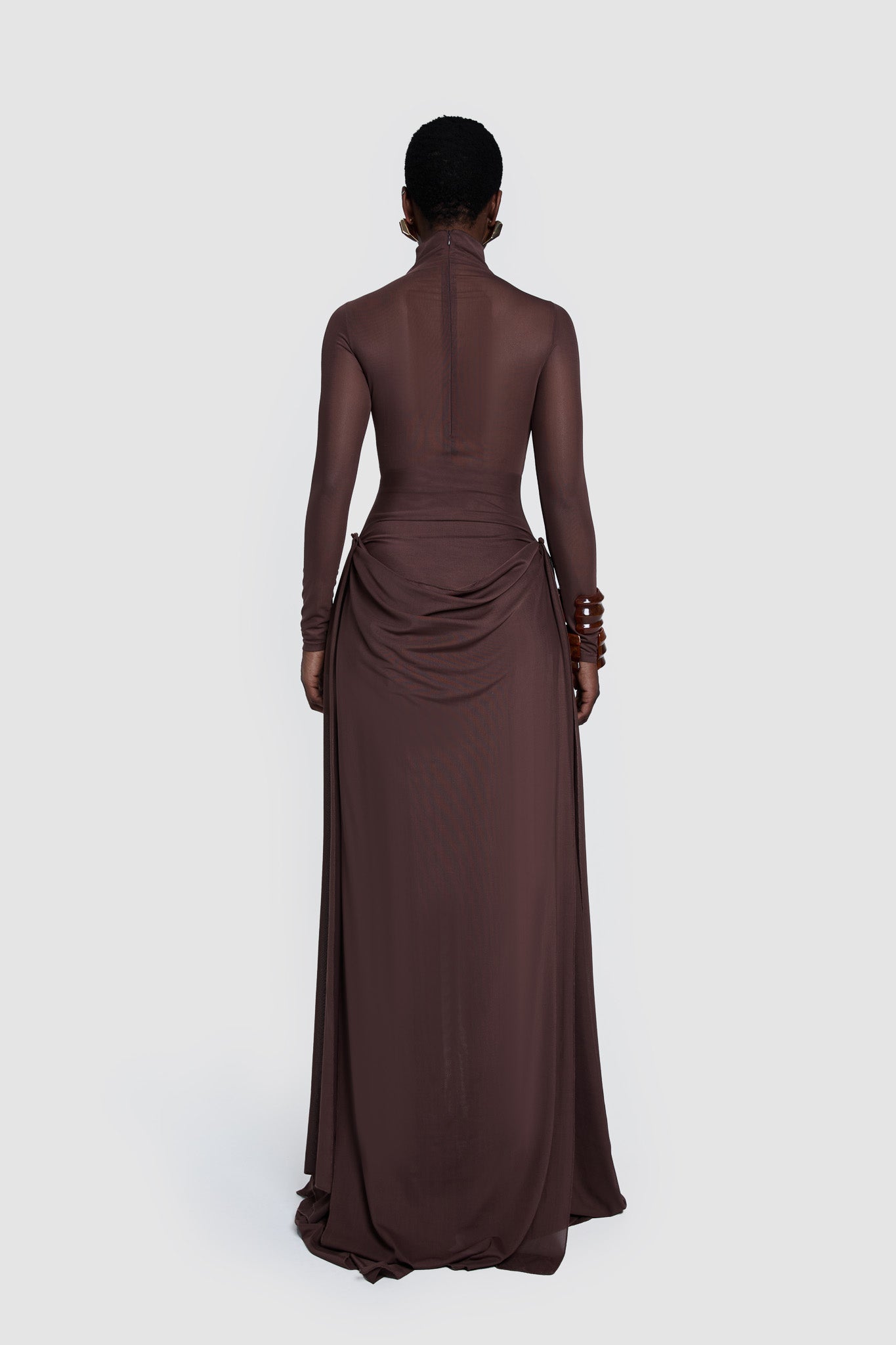 Tao is new and heaven in drapery form! With carefully placed draped panels to help accentuate and flatter your bodys shape, it is a show stopper piece. Perfect for any main event energy.