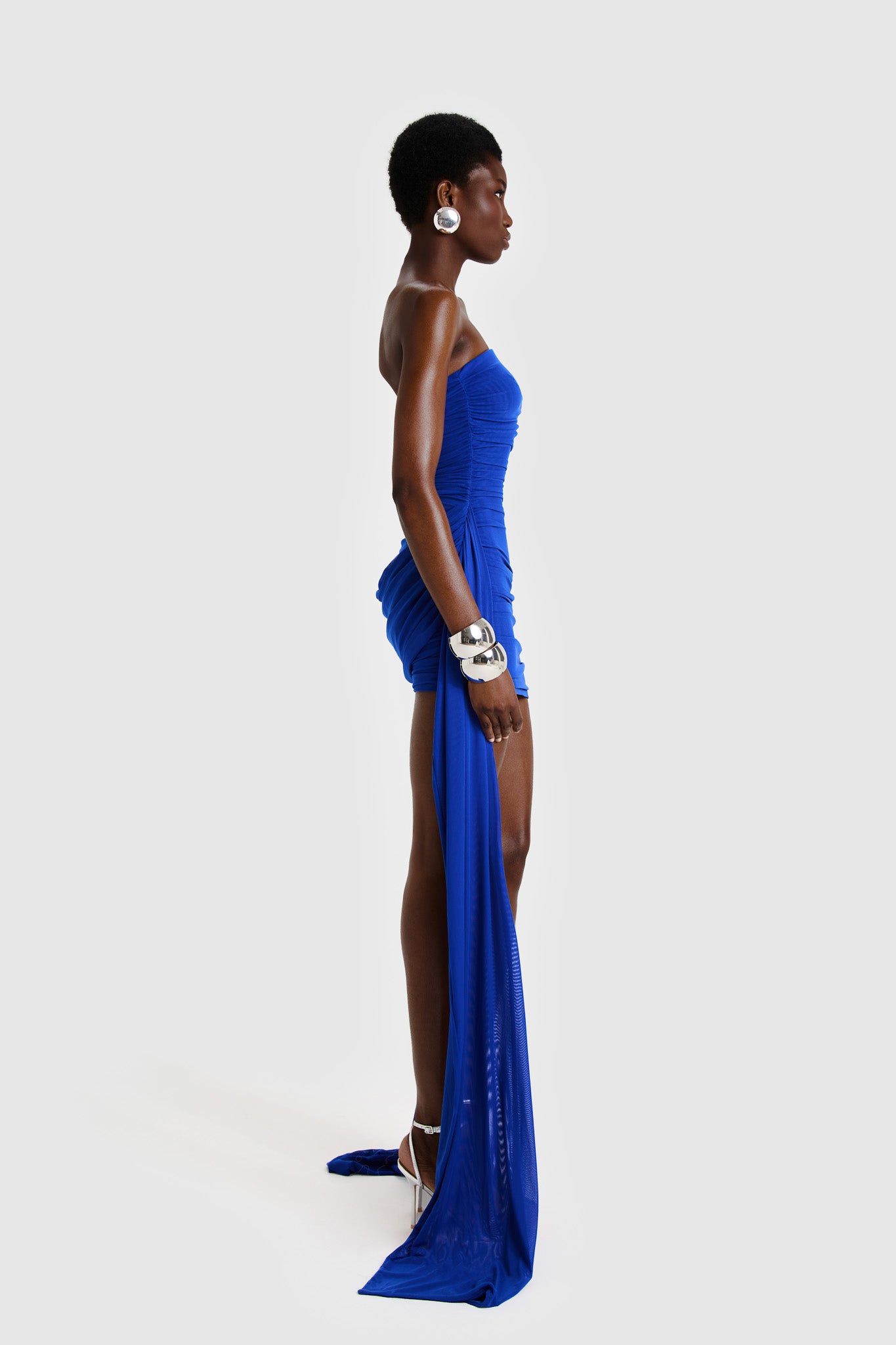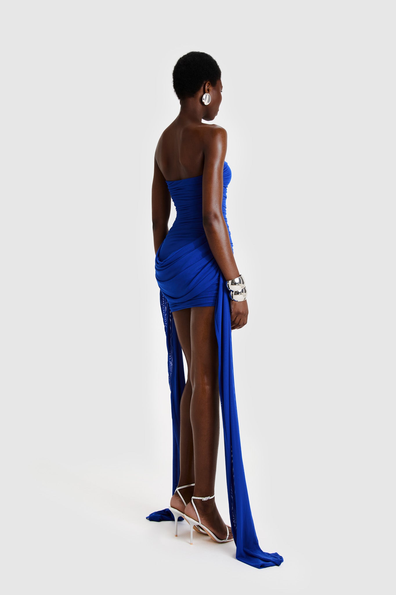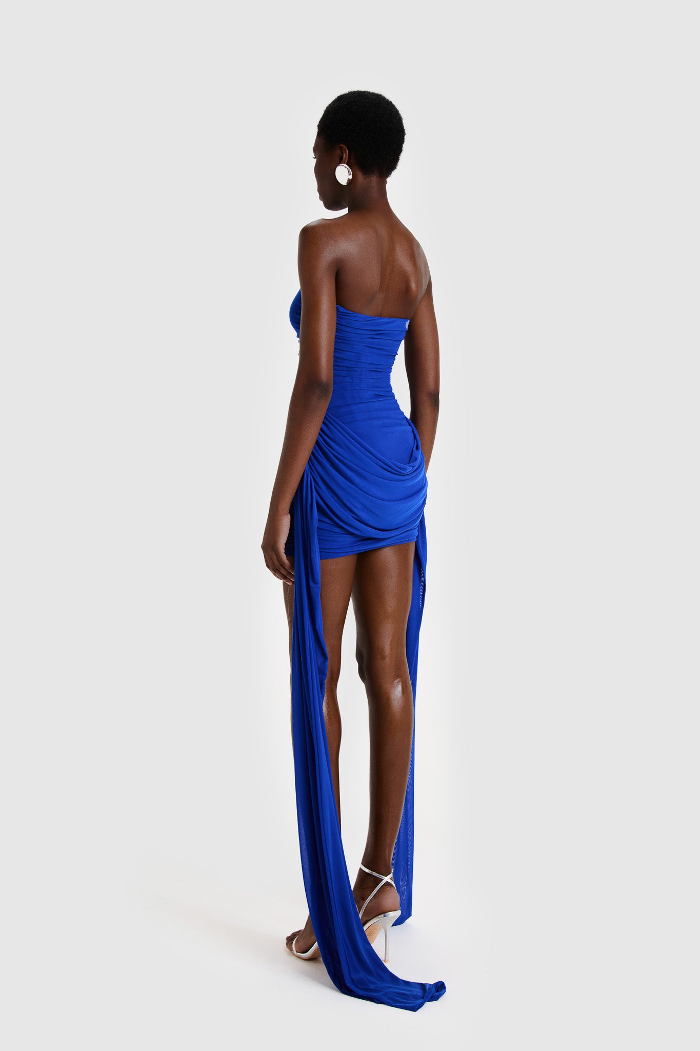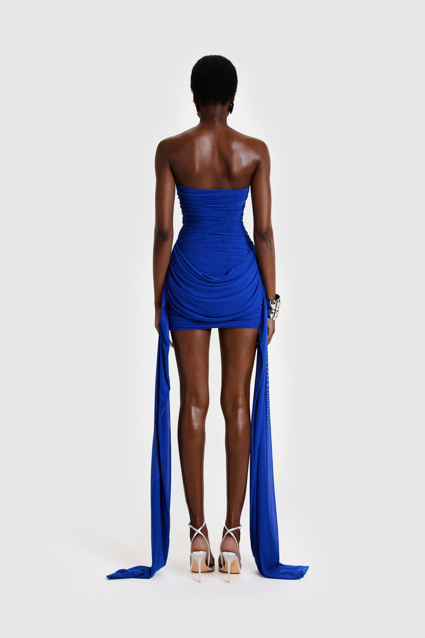 Zaya is made from a super soft, stretchy double layered mesh. With exaggerated ruching though out and floor length side straps, she is the perfect, versatile, stand-out mini that will get everyones attention in the room!