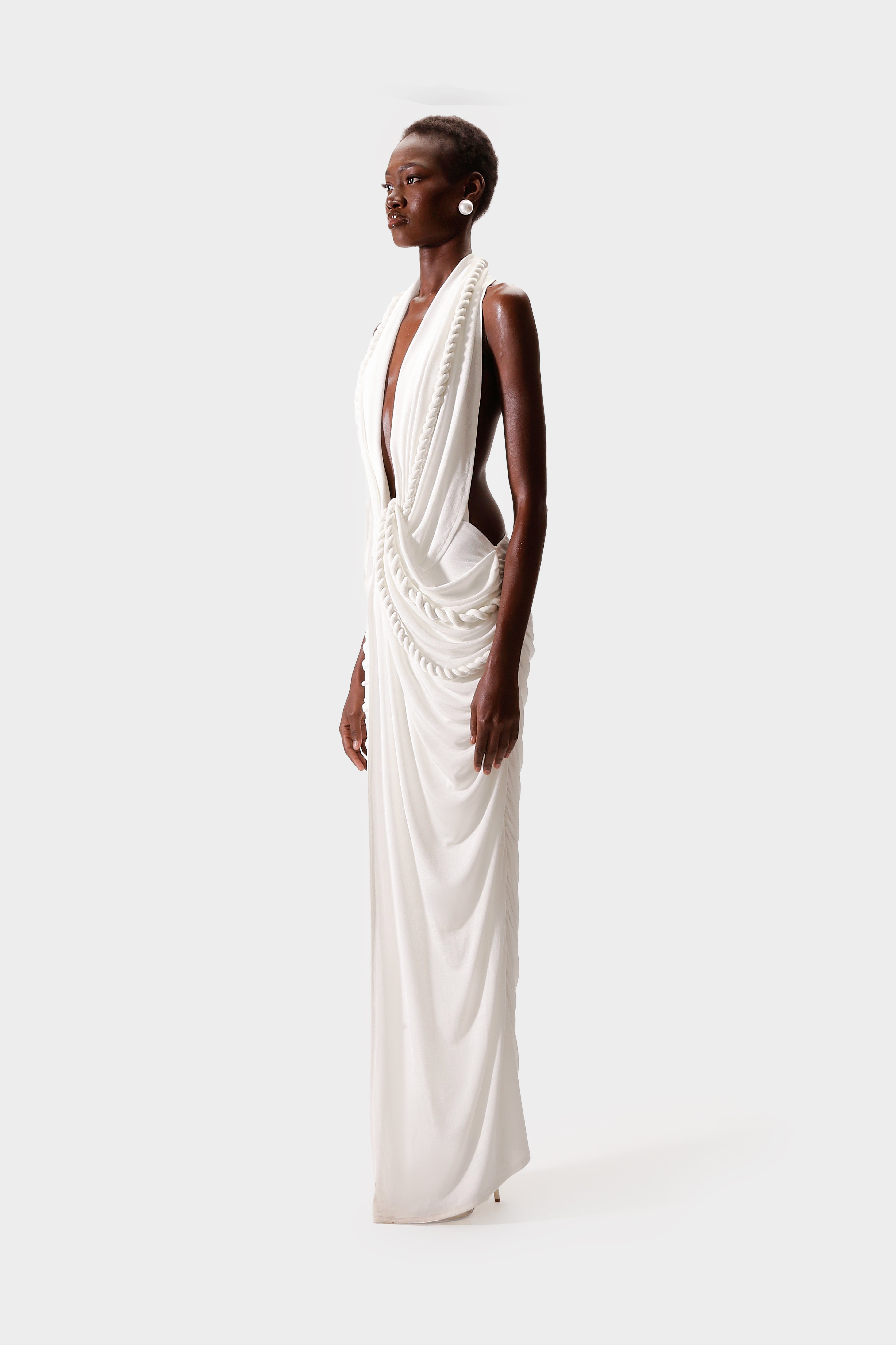 Turn heads with our new Londres Maxi in the backless variation. Perfect for beach-to-bar nights, this striking dress features a sexy open back and twisted rope detailing that adds a unique touch. Flattering diagonal ruching enhances your natural silhouette, making it the ultimate hot girl dress this season. Embrace effortless style and confidence wherever you go.