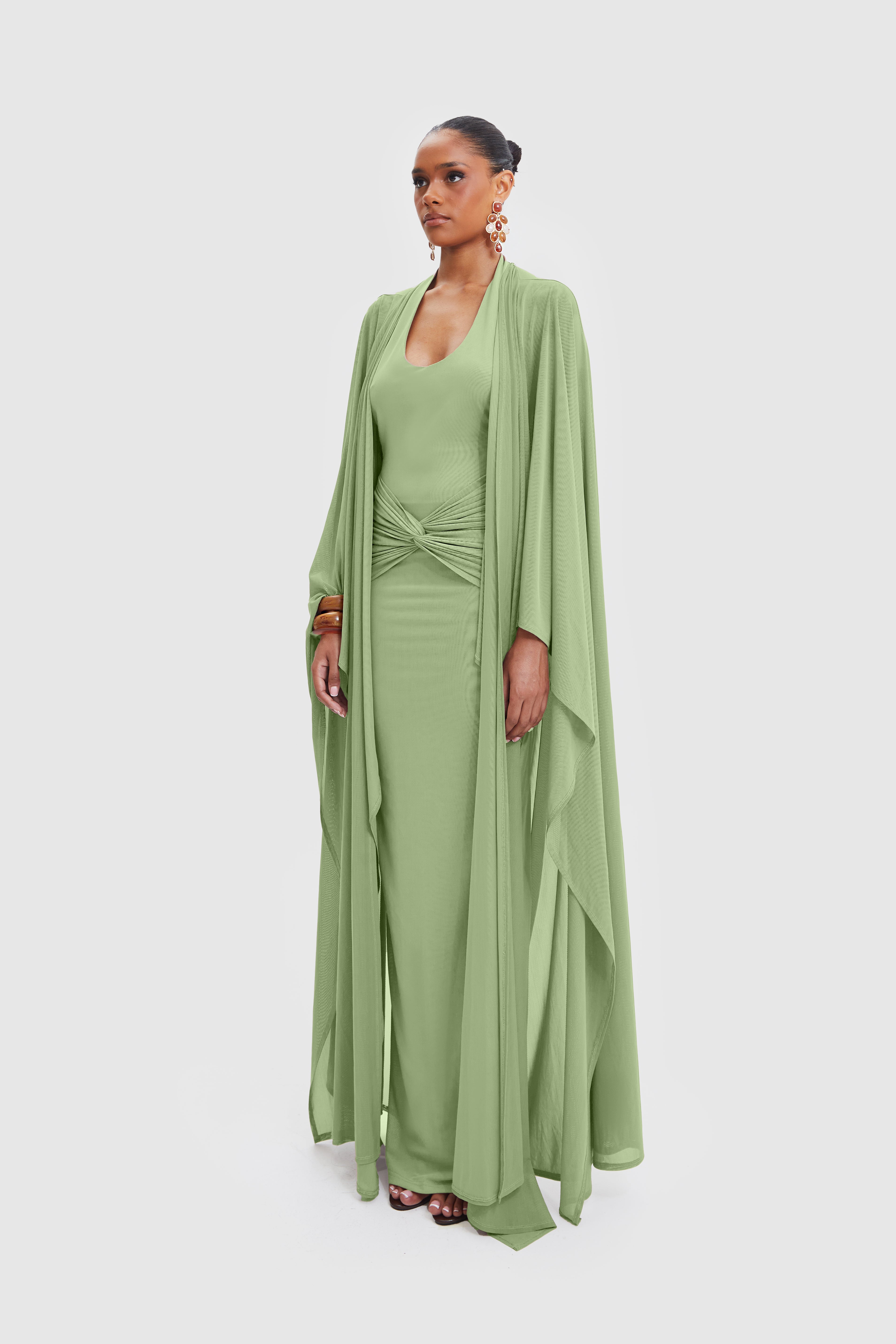 The Aluya Cape is the most elegant, classy cape made with delicate waterfall drapery. Pair with the Aluya maxi for a full striking look. Can also be worn as a beach cover up or as a robe. Sold separately to dresses.