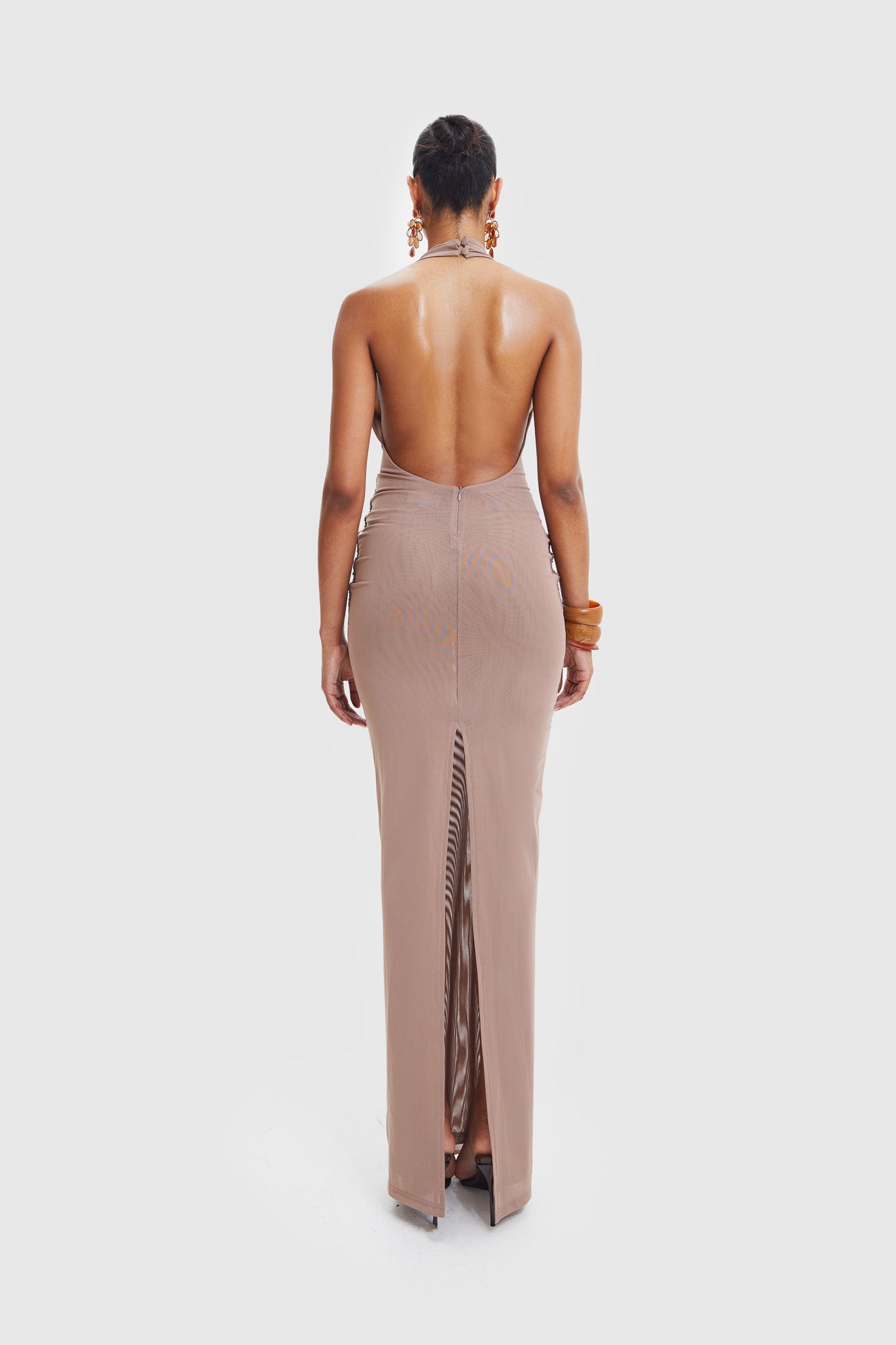Design: Open back specifically to be worn with the Aluya Cape for a full open back moment
