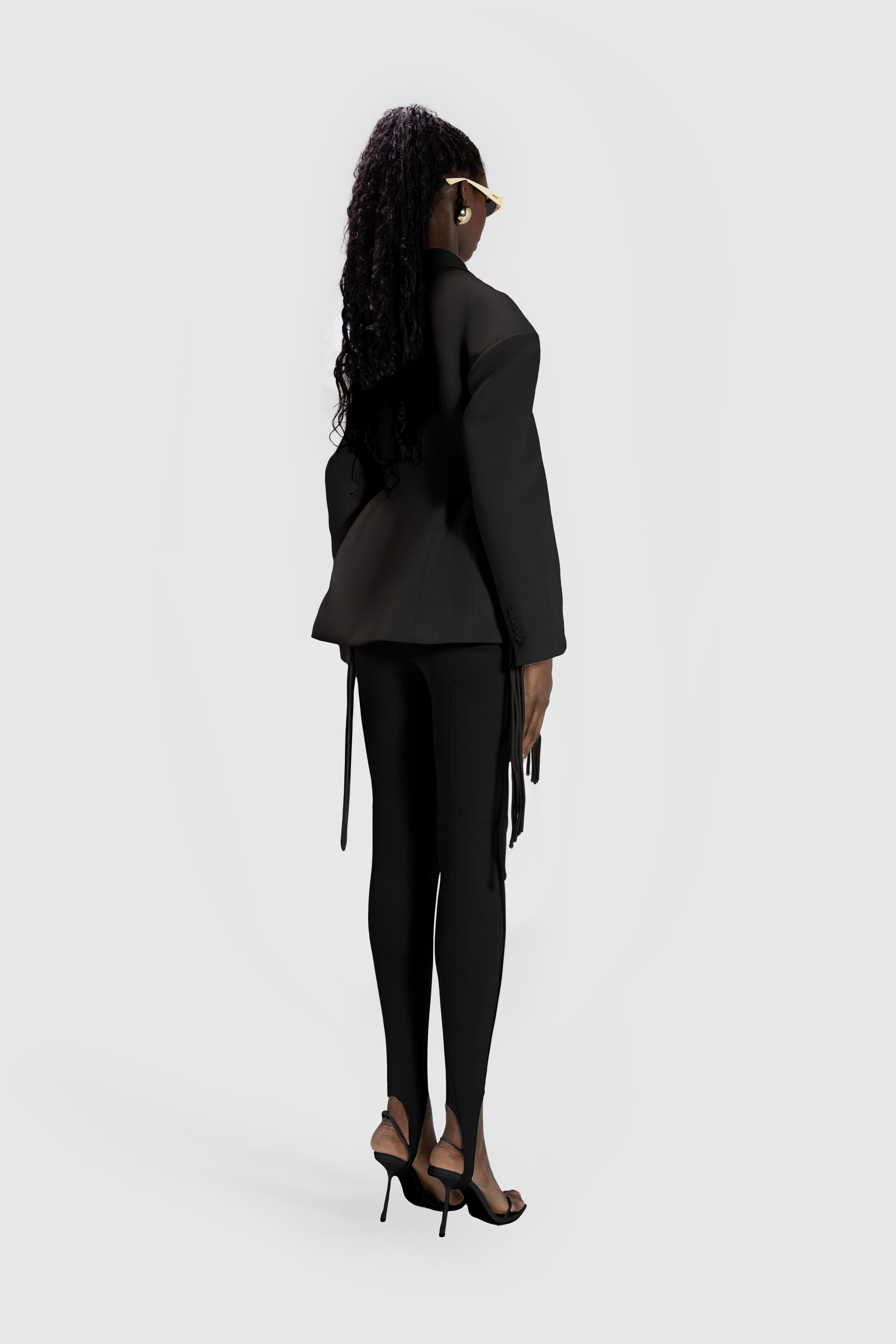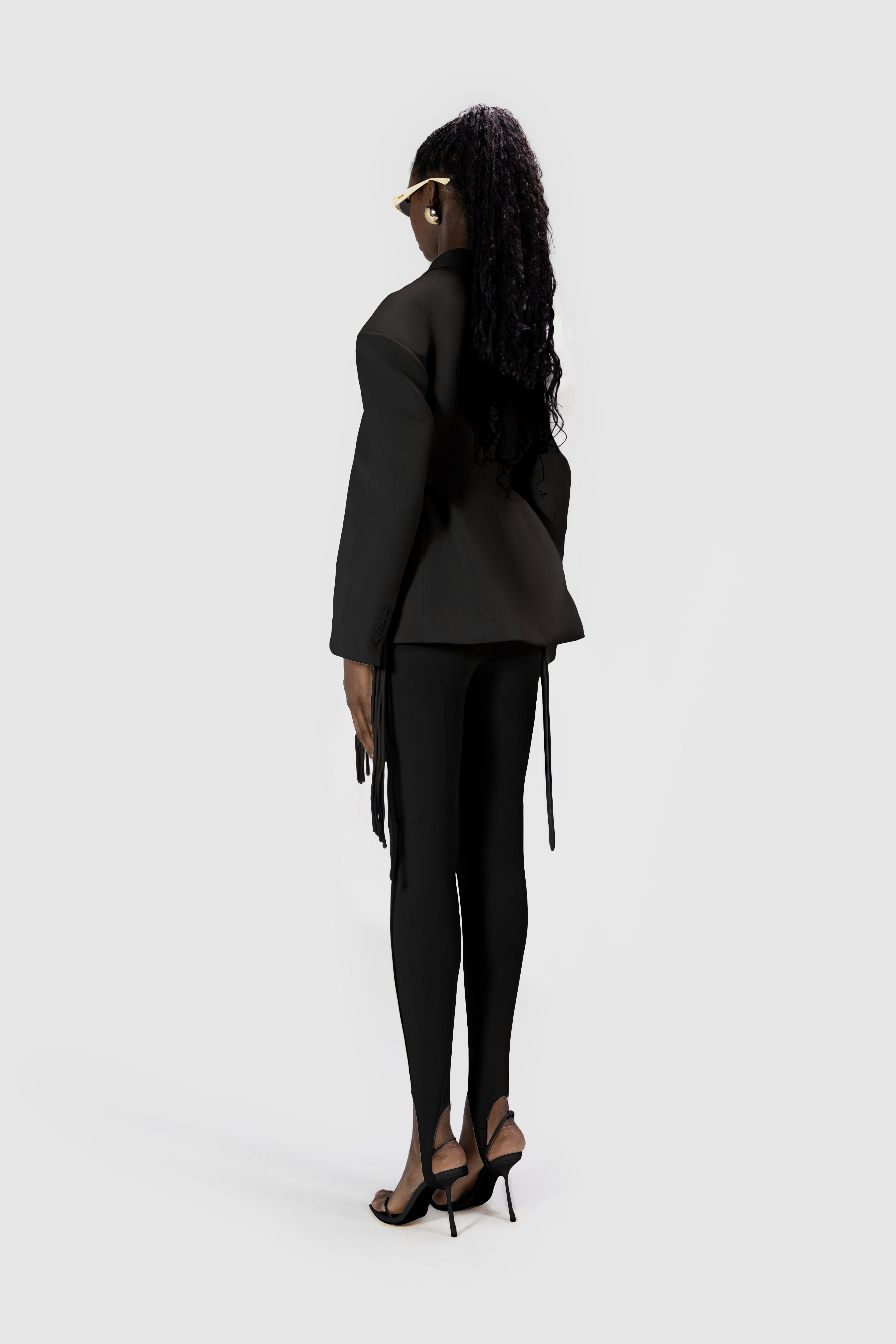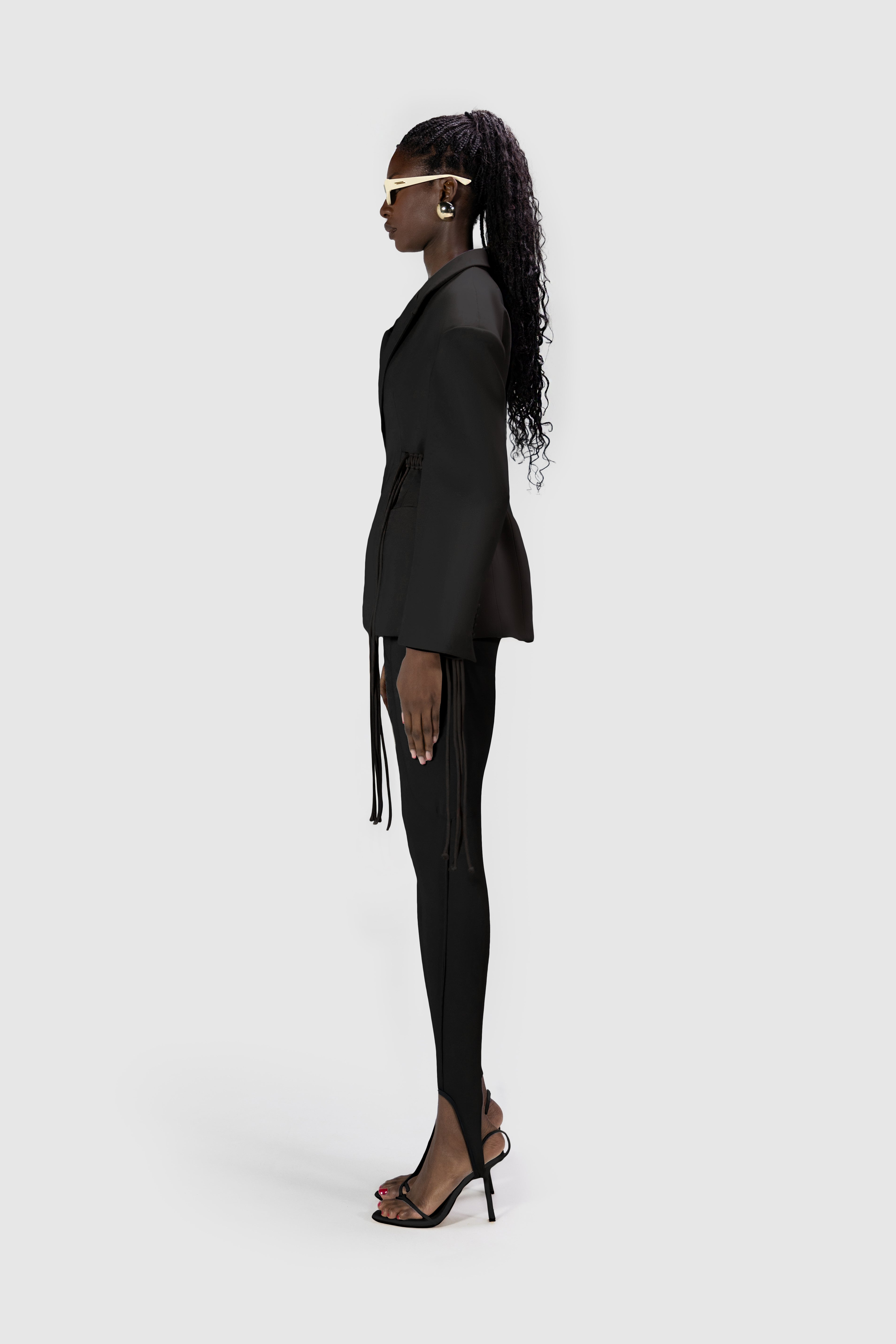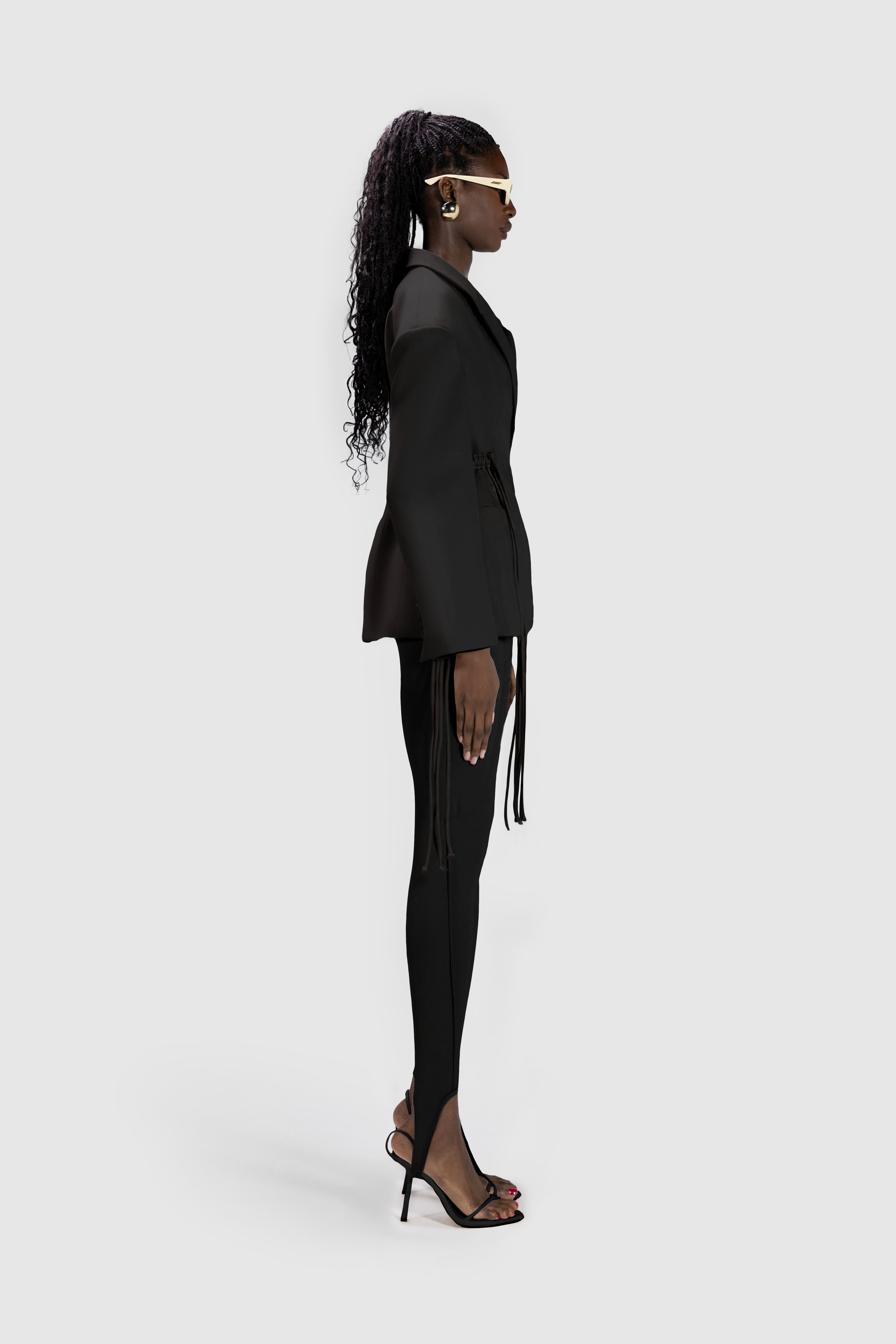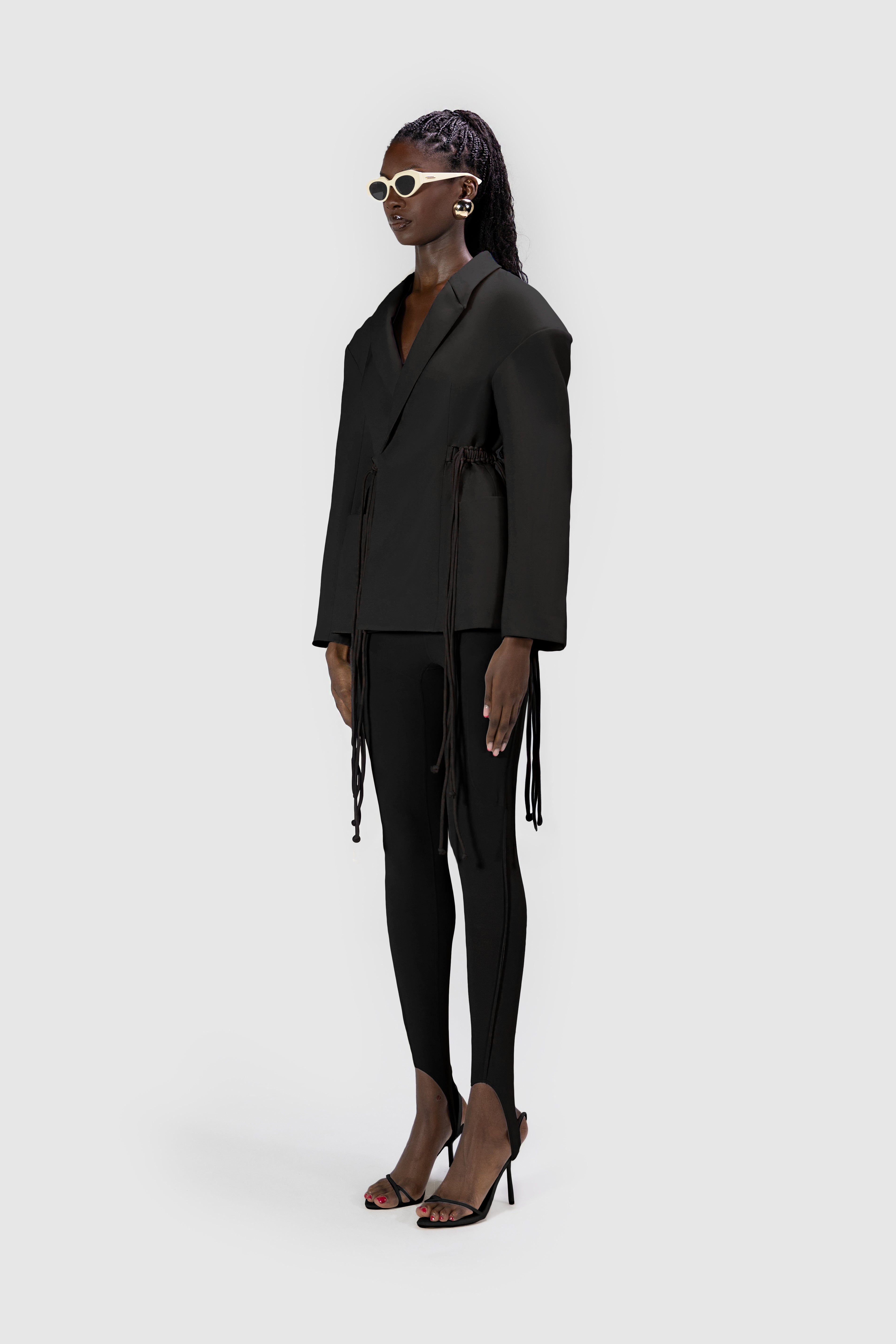 Fitted oversized blazer with drop shoulders and waist cord strap detailing.