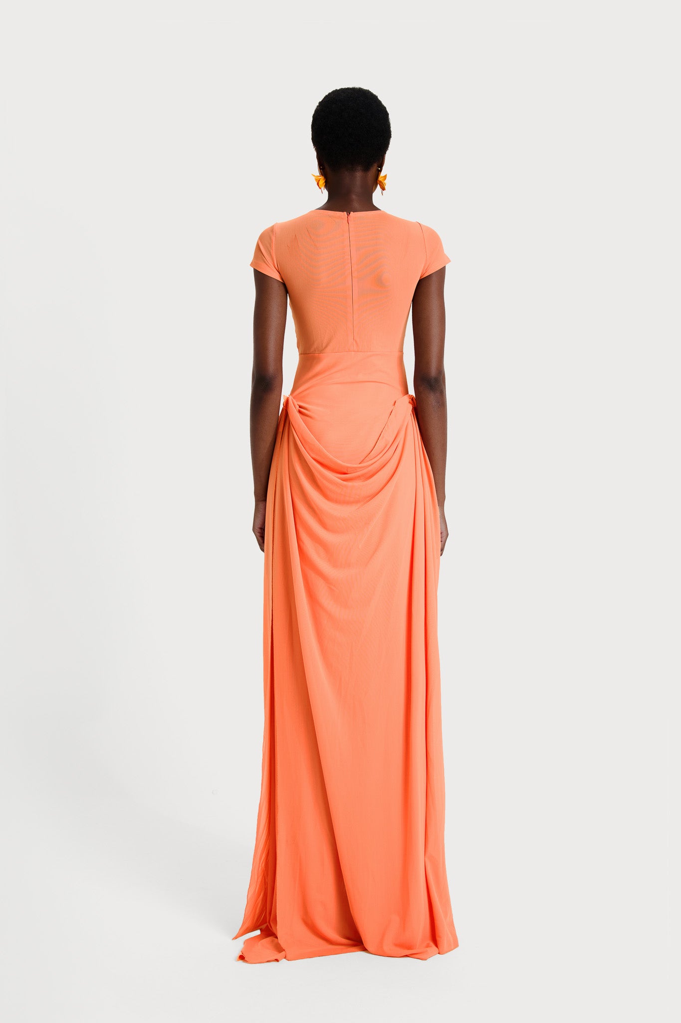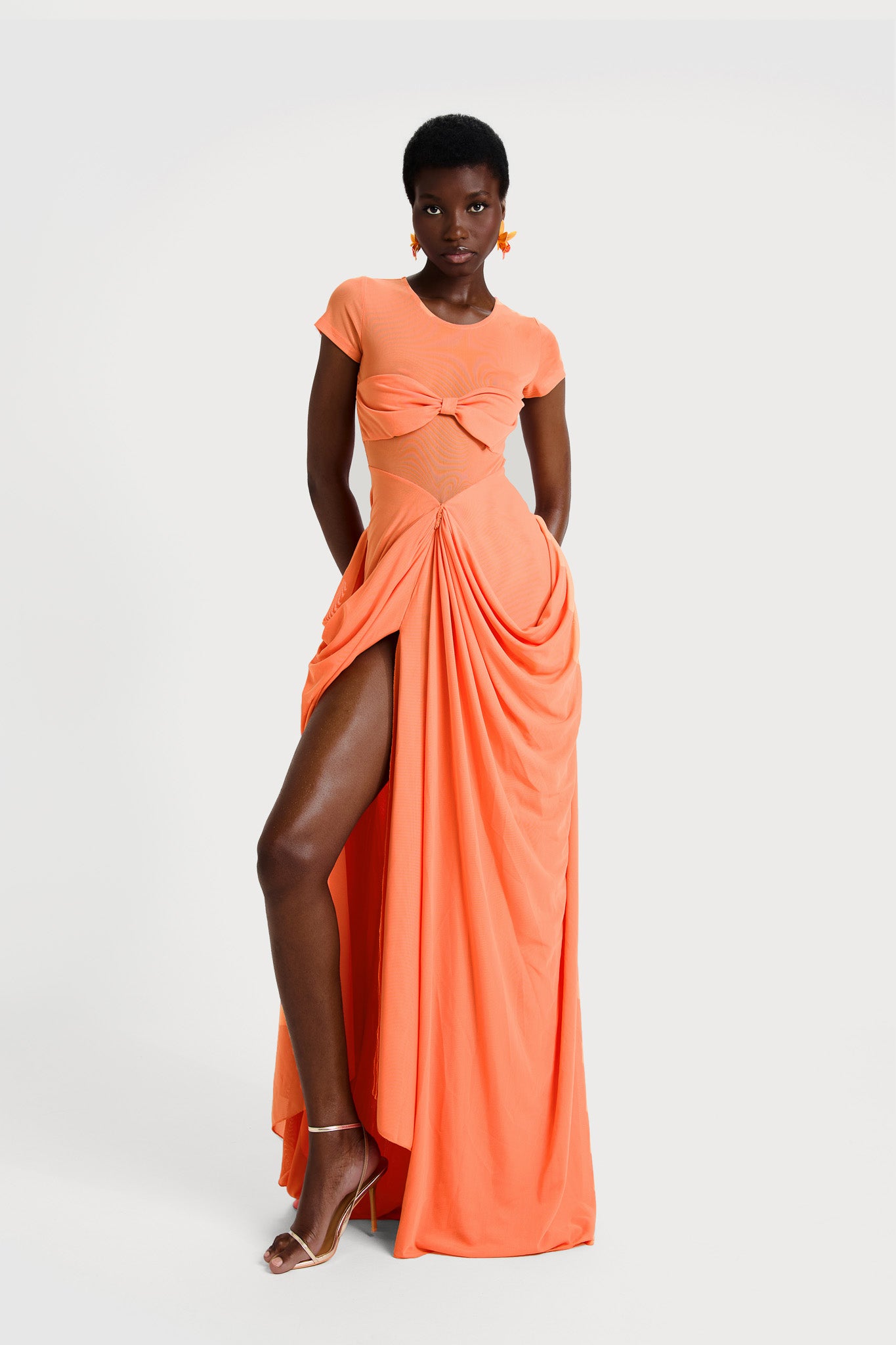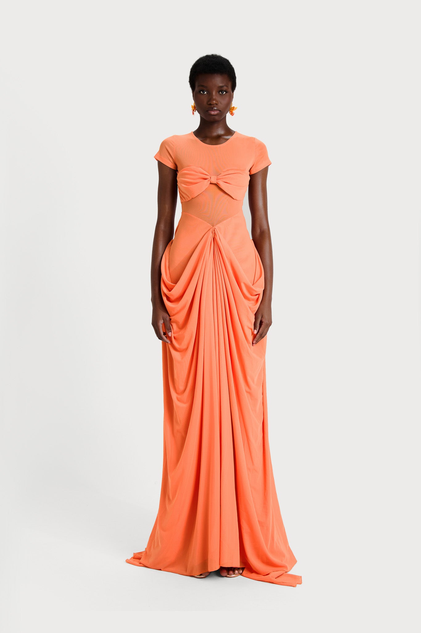 Tao is new and heaven in drapery form! With carefully placed draped panels to help accentuate and flatter your bodys shape, it is a show stopper piece. Perfect for any main event energy.