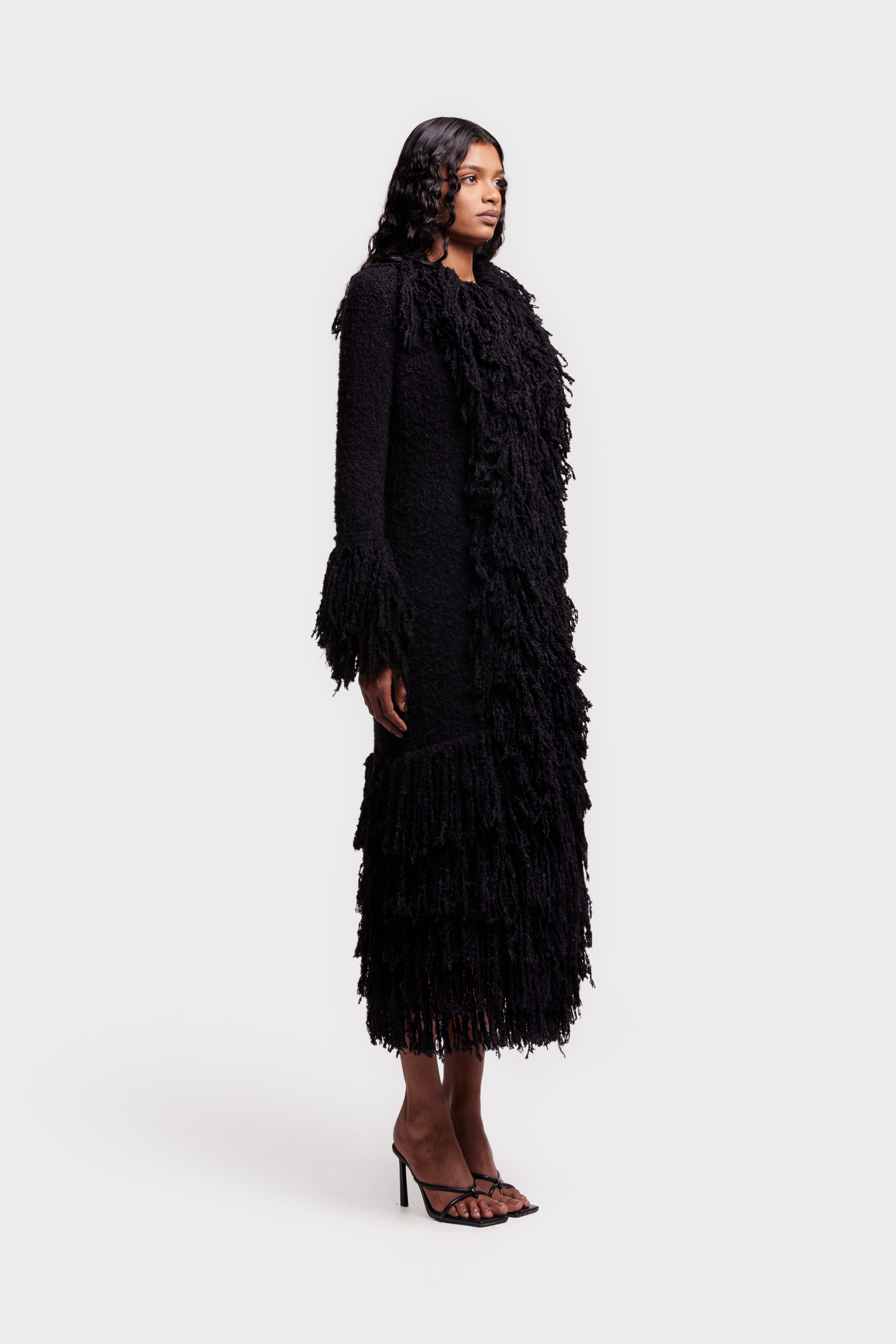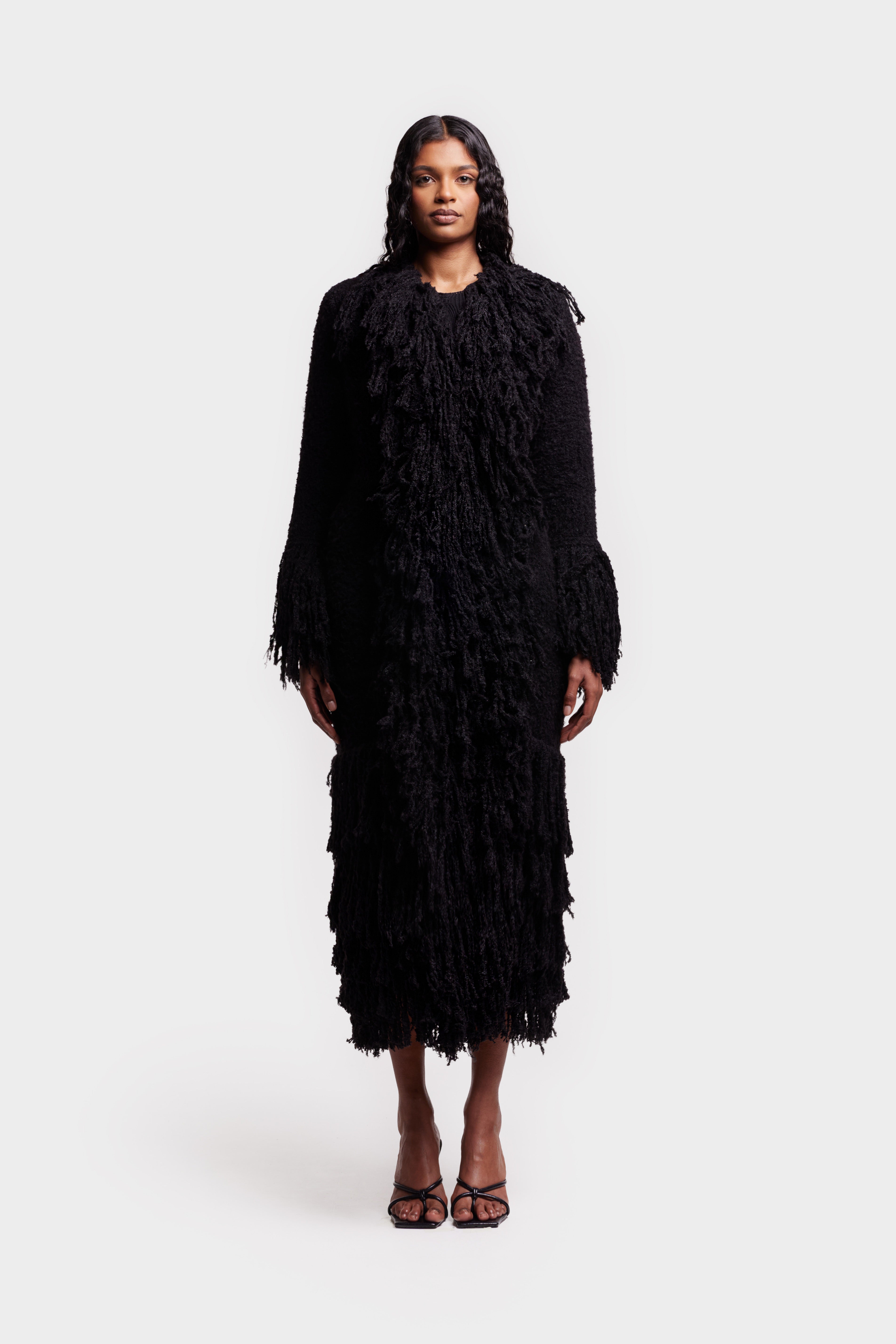 Our new staple knitted fur coat, bought to life for the modern chiq, classy woman. Crafted from the finest Organic Wool and Alpaca with show stopping fringe detailing throughout. Perfect for your IT moment!