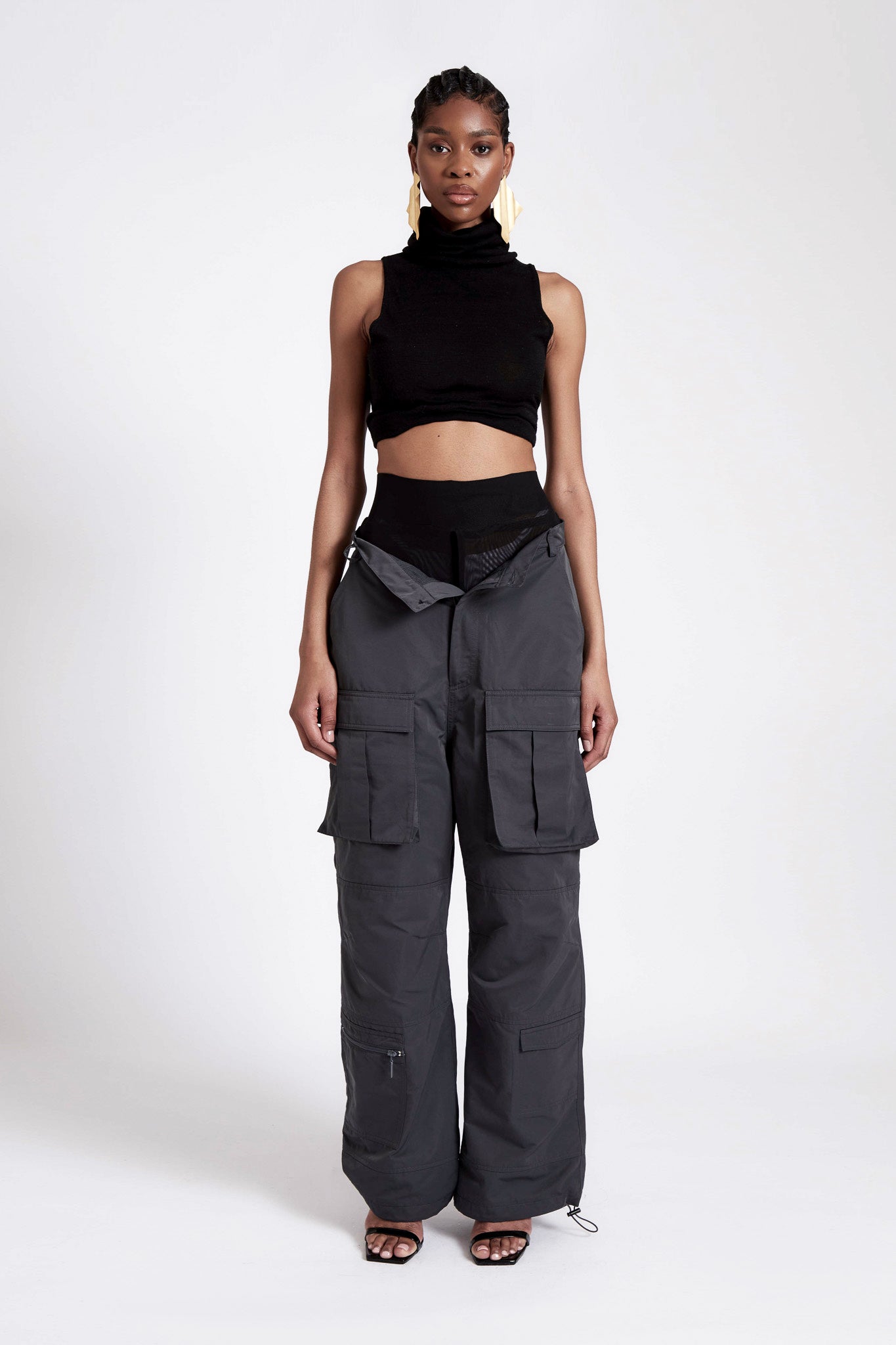 Our relaxed cargo pants have been made from our very favoured windbreaker fabric with over the top pockets and mesh lining interior. Super comfortable, super chiq. Finsihed with stitching detailing throughout. Pair with heels and dress up or wear for a casual dressed look
