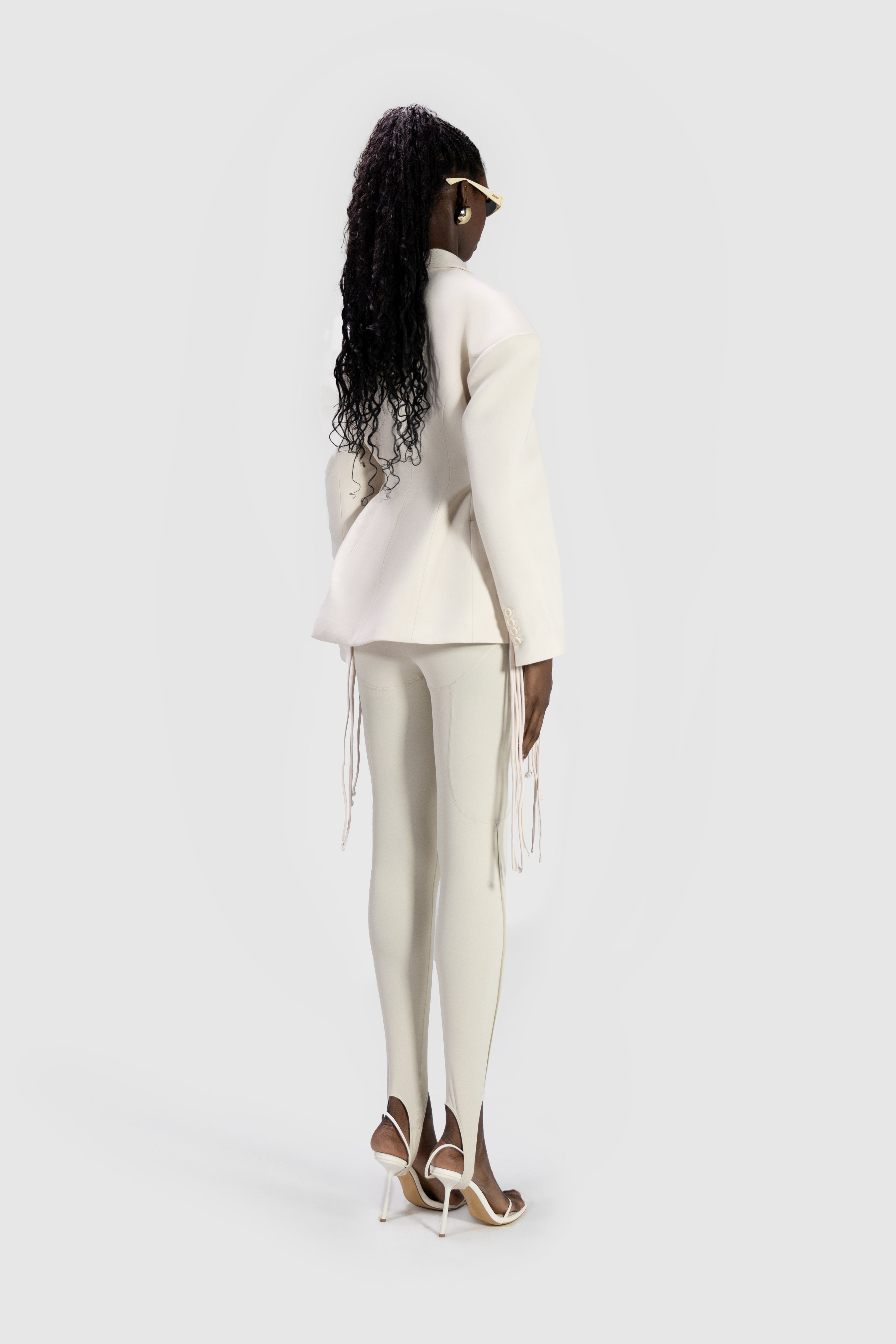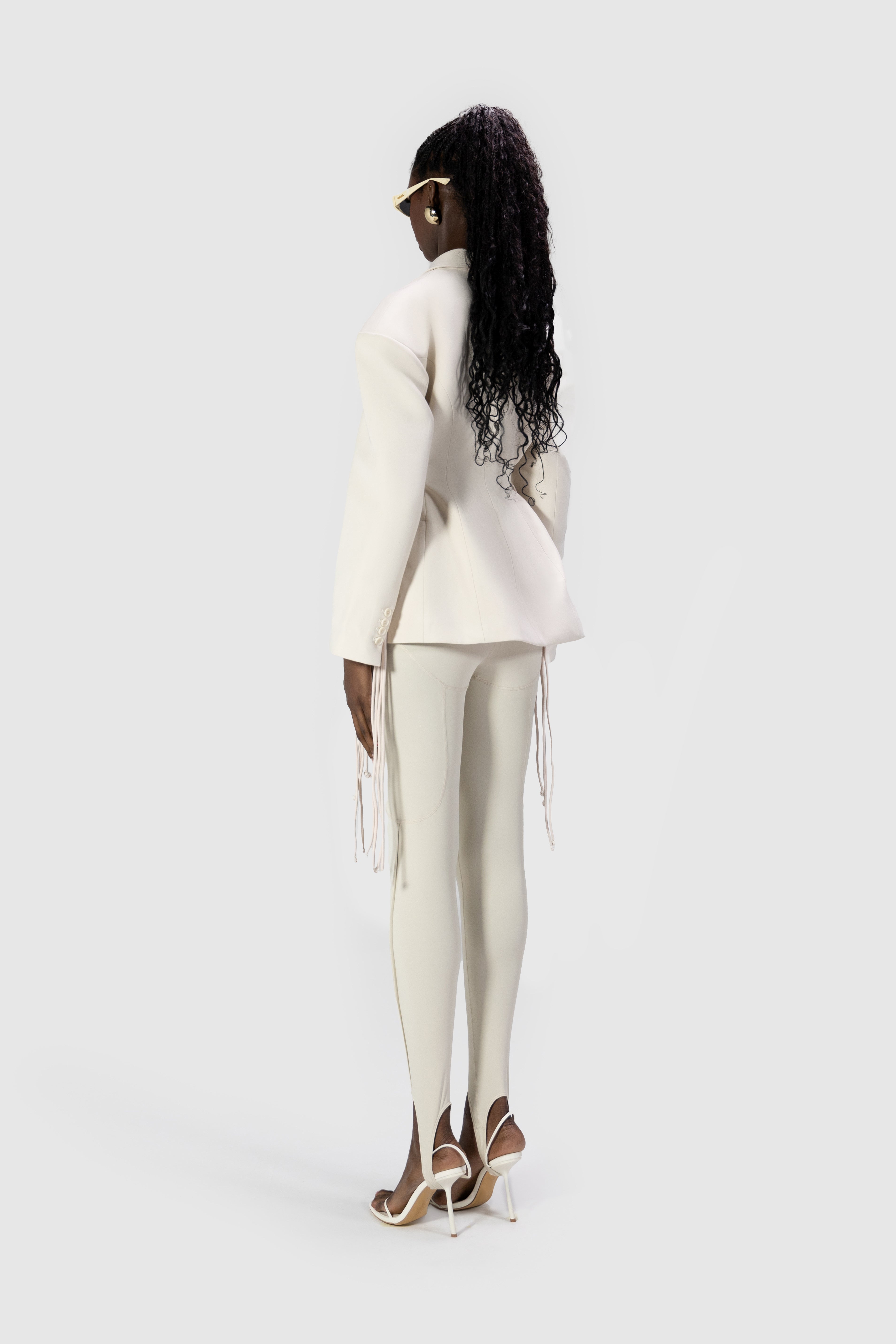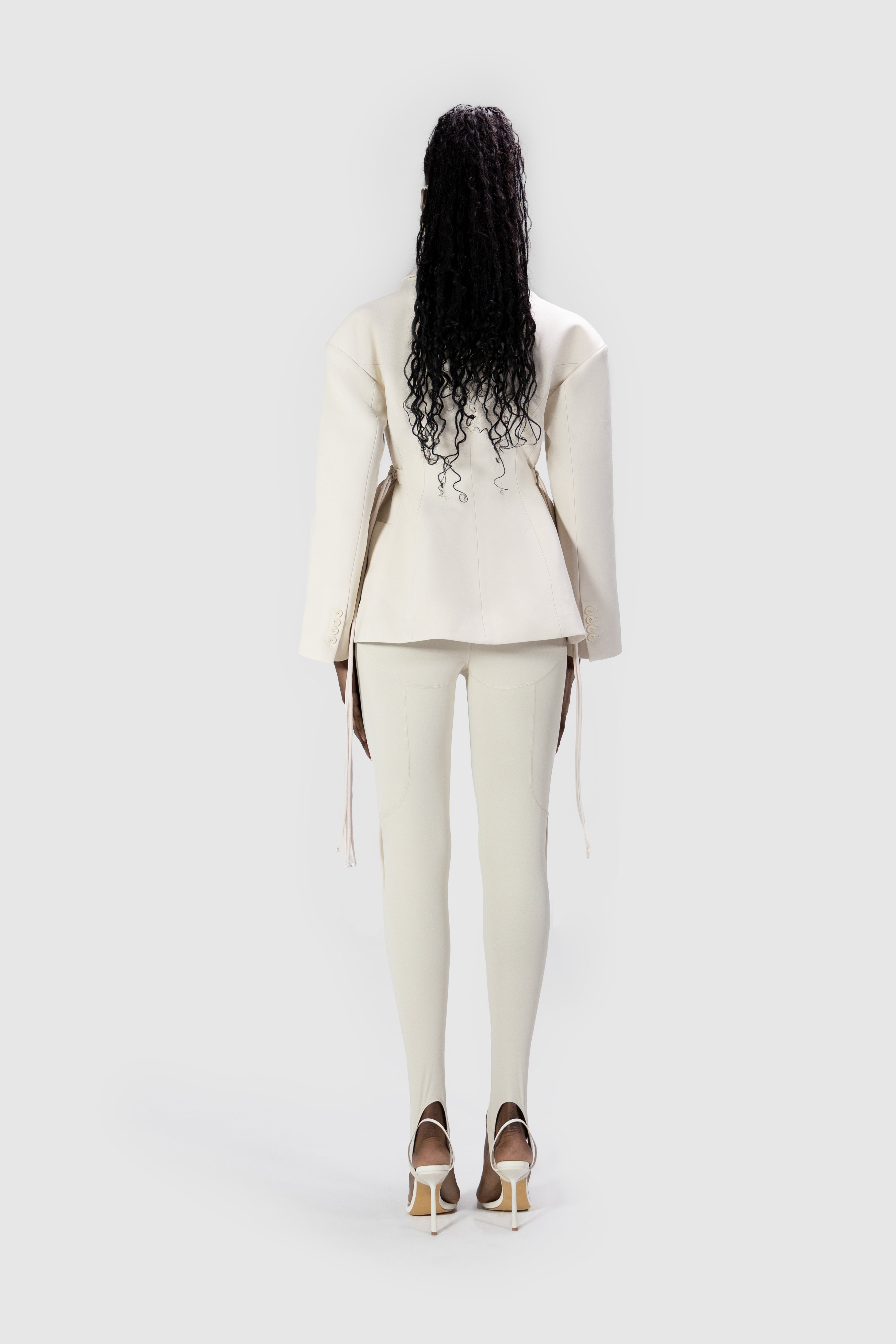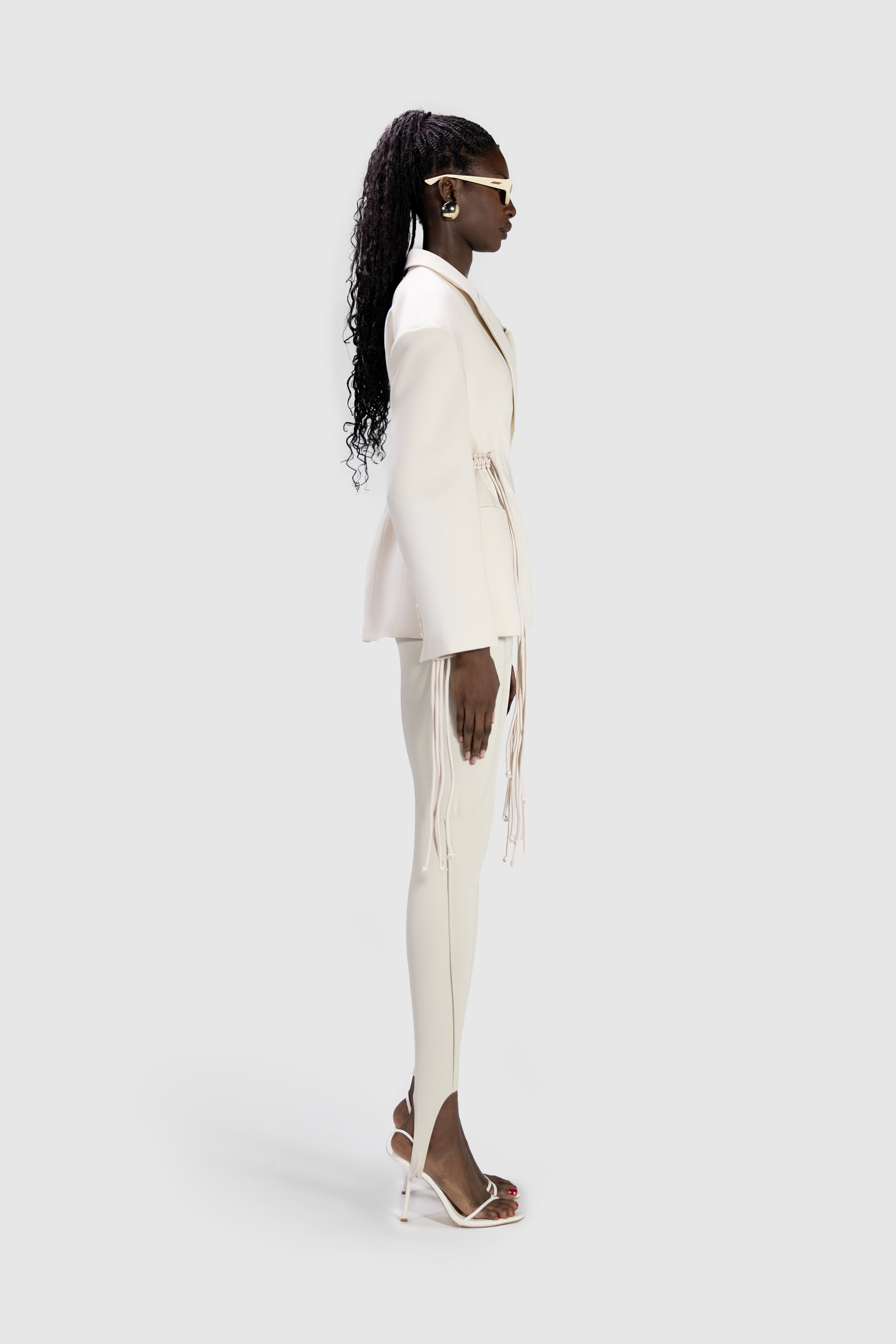 Fitted oversized blazer with drop shoulders and waist cord strap detailing.
