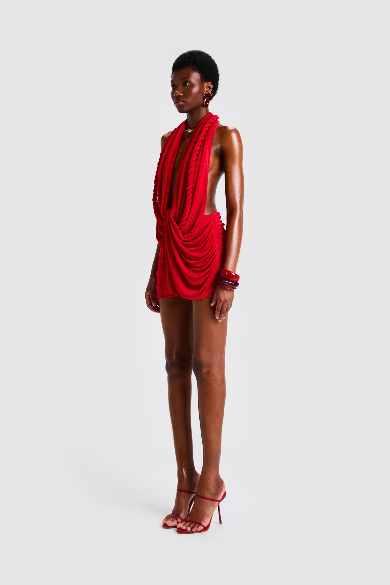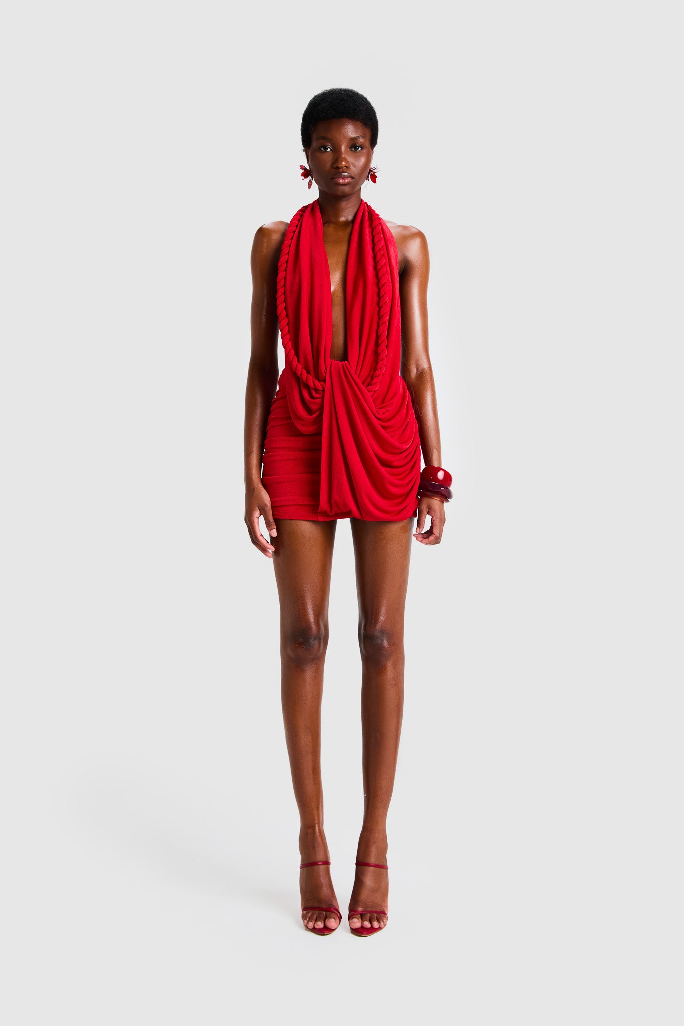 Perfect for beach-to-bar nights, this striking dress features a sexy open back and twisted rope detailing that adds a unique touch. Flattering diagonal ruching enhances your natural silhouette, making it the ultimate hot girl dress this season.