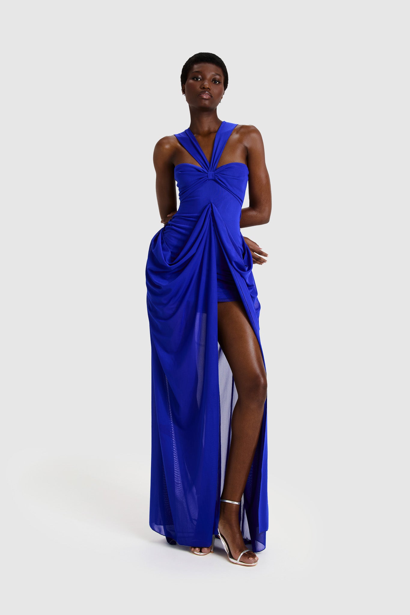 Tao is new and heaven in drapery form! With this mini style that sways in the summer breeze, she's a dream. Carefully placed draped panels to help accentuate and flatter your bodys shape, Tao is perfect for any main event energy.