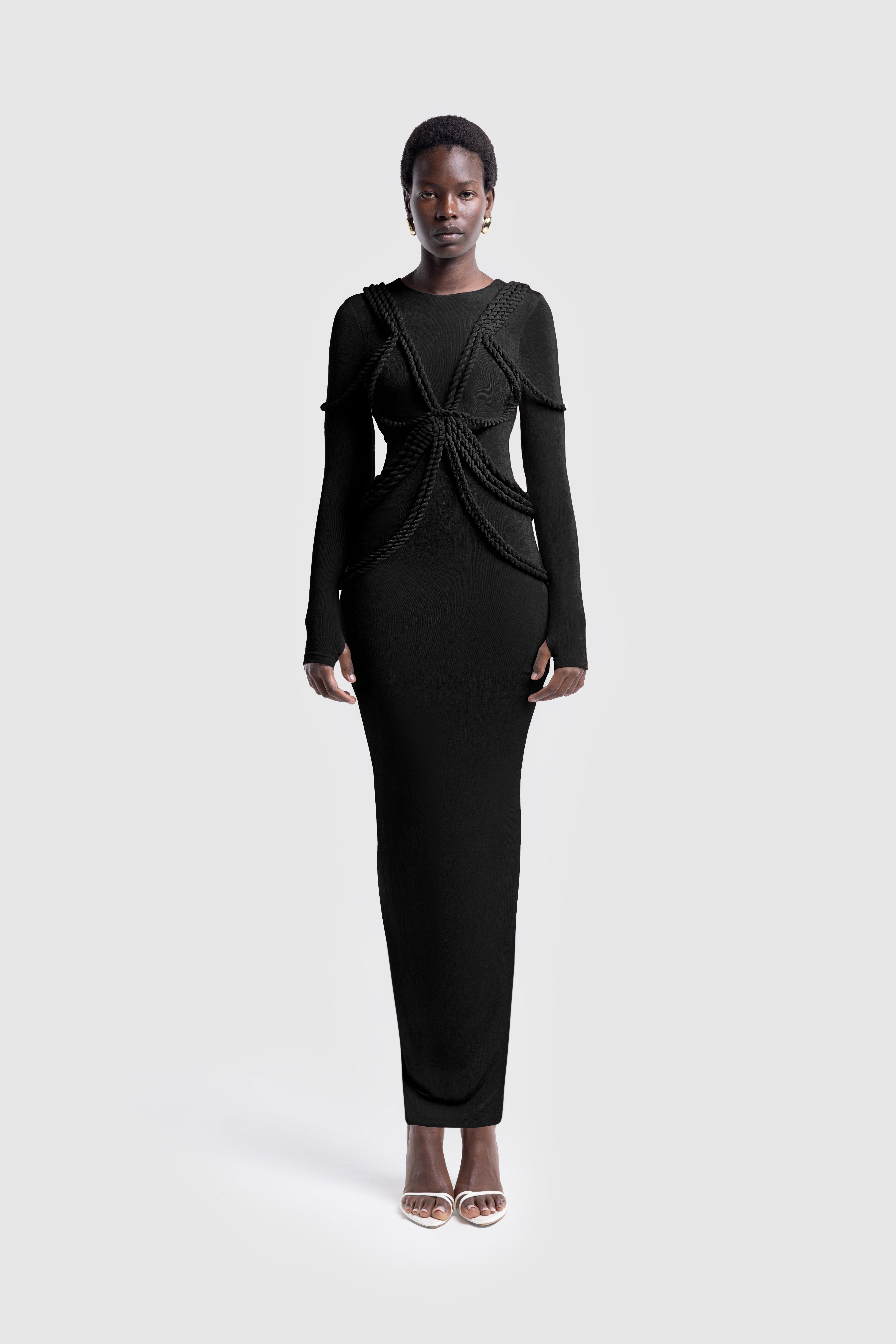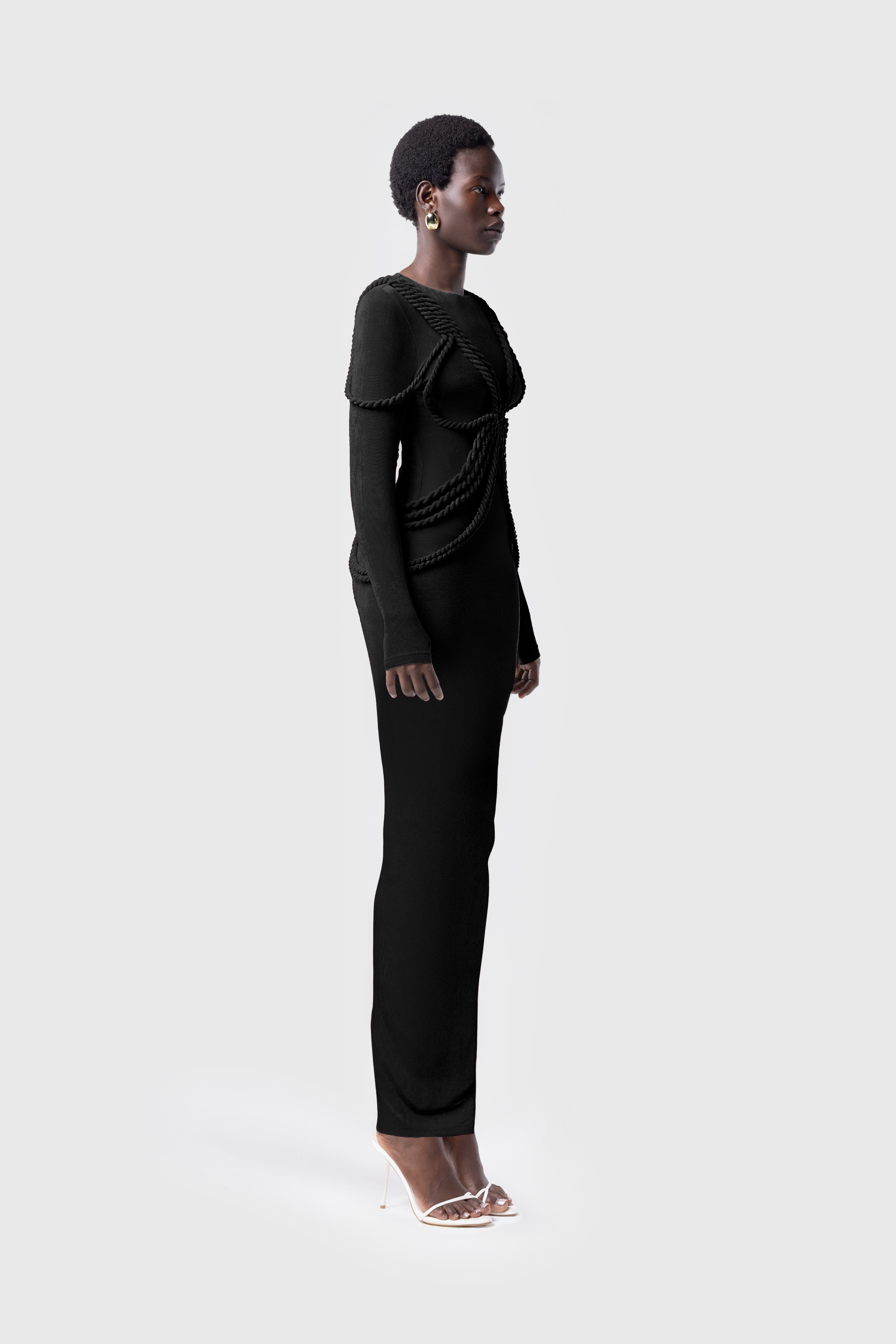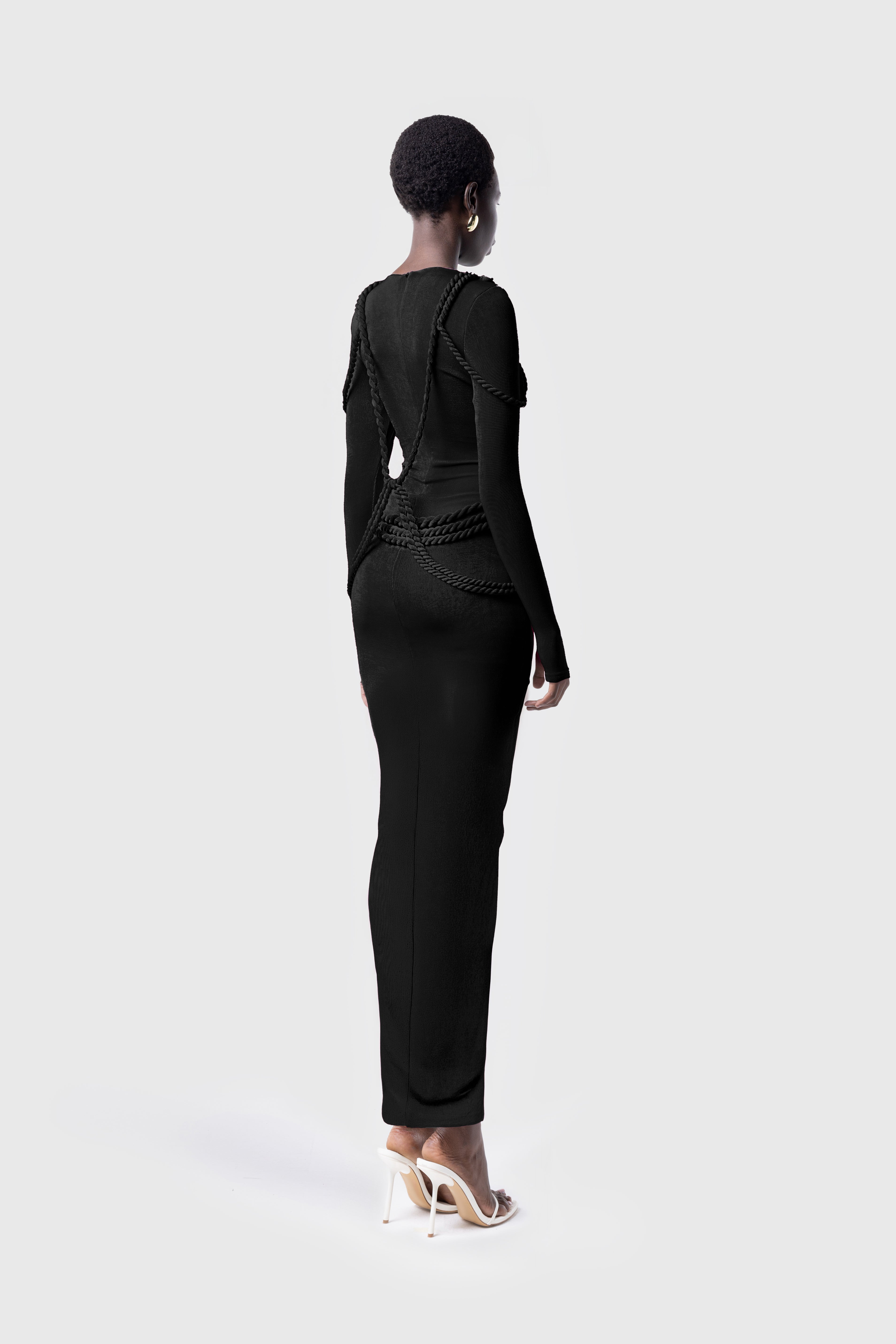 A unique, stunning, sleek maxi with body chain made from twisted rope detailing.