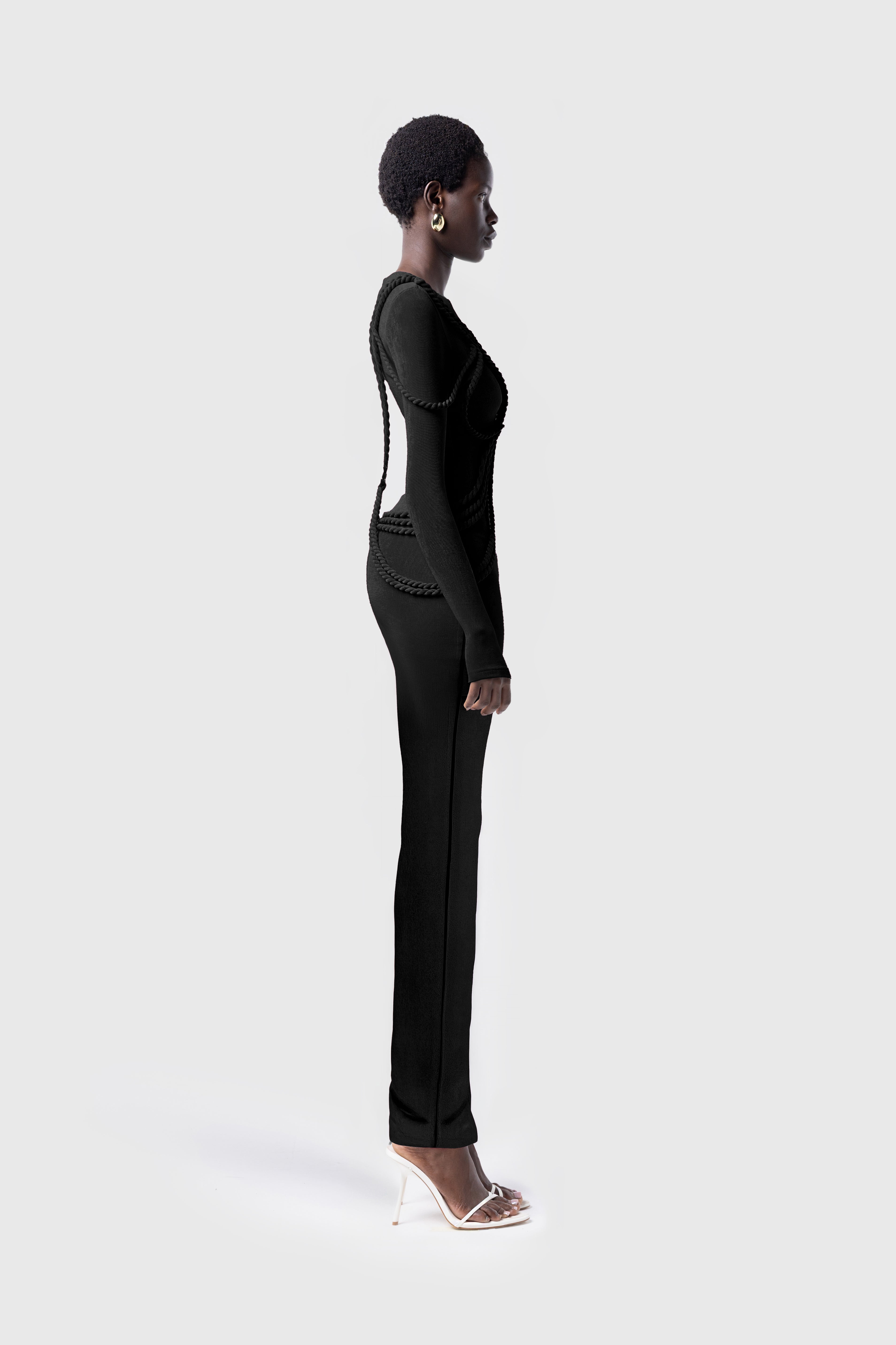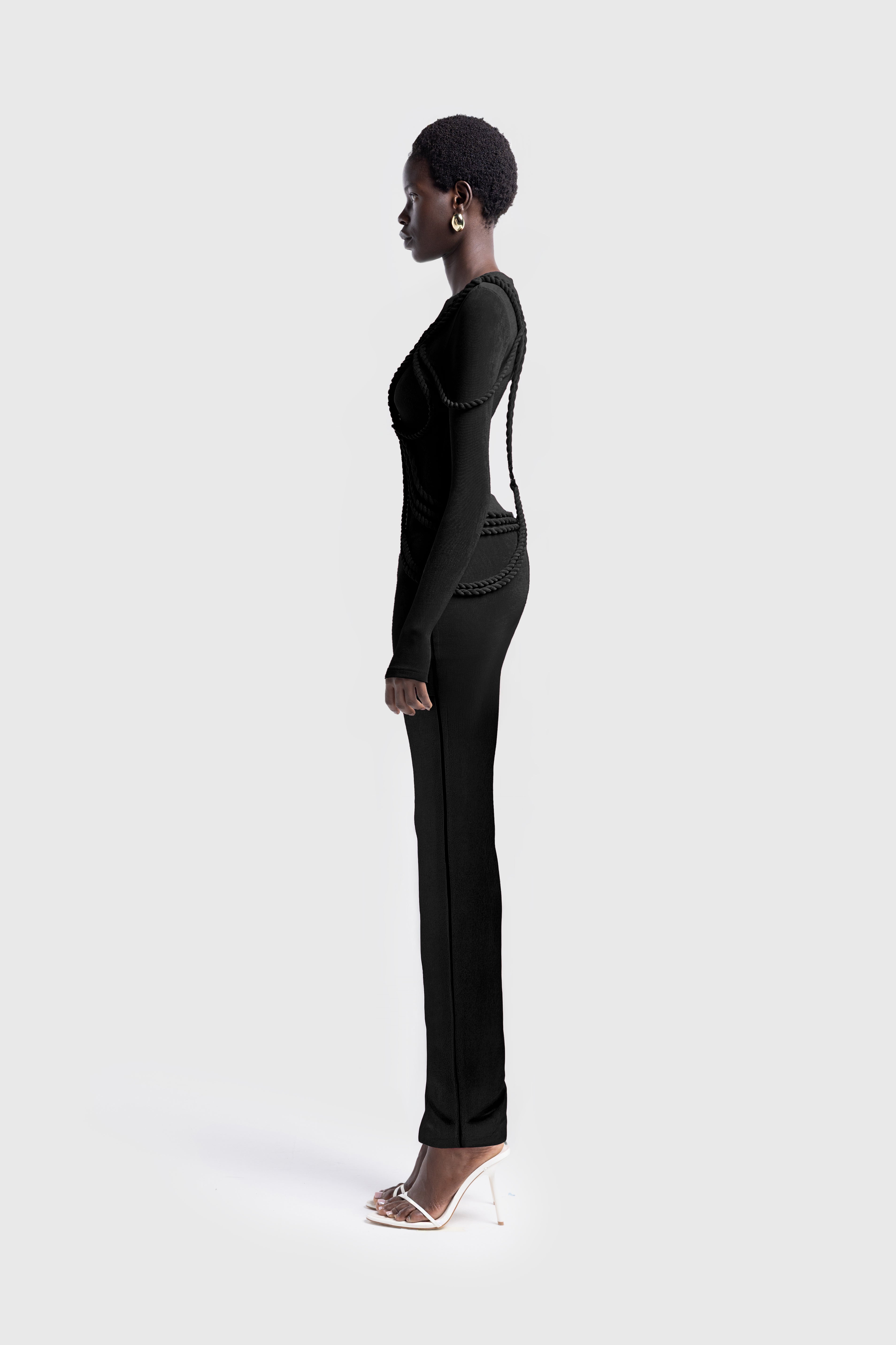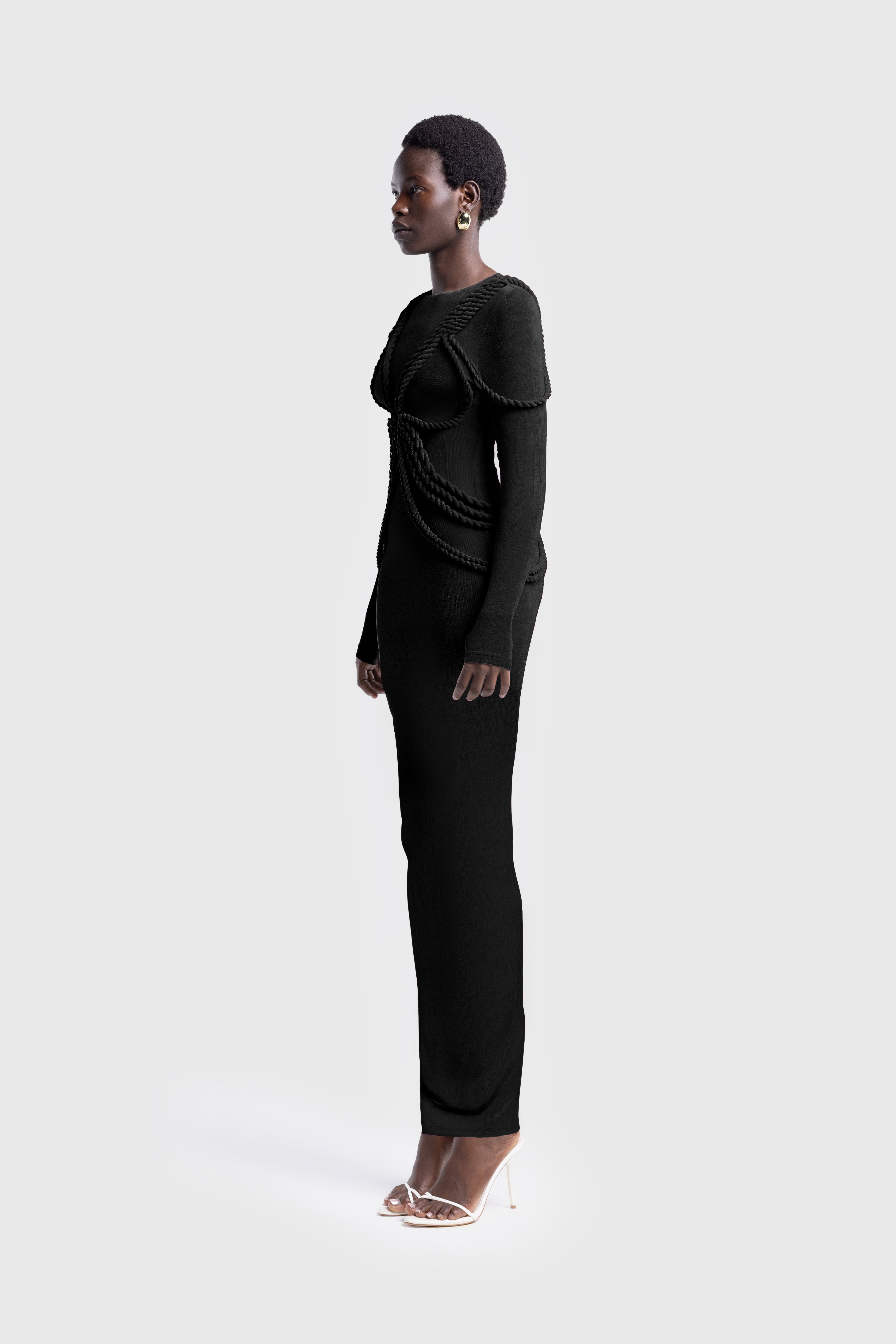 A unique, stunning, sleek maxi with body chain made from twisted rope detailing.