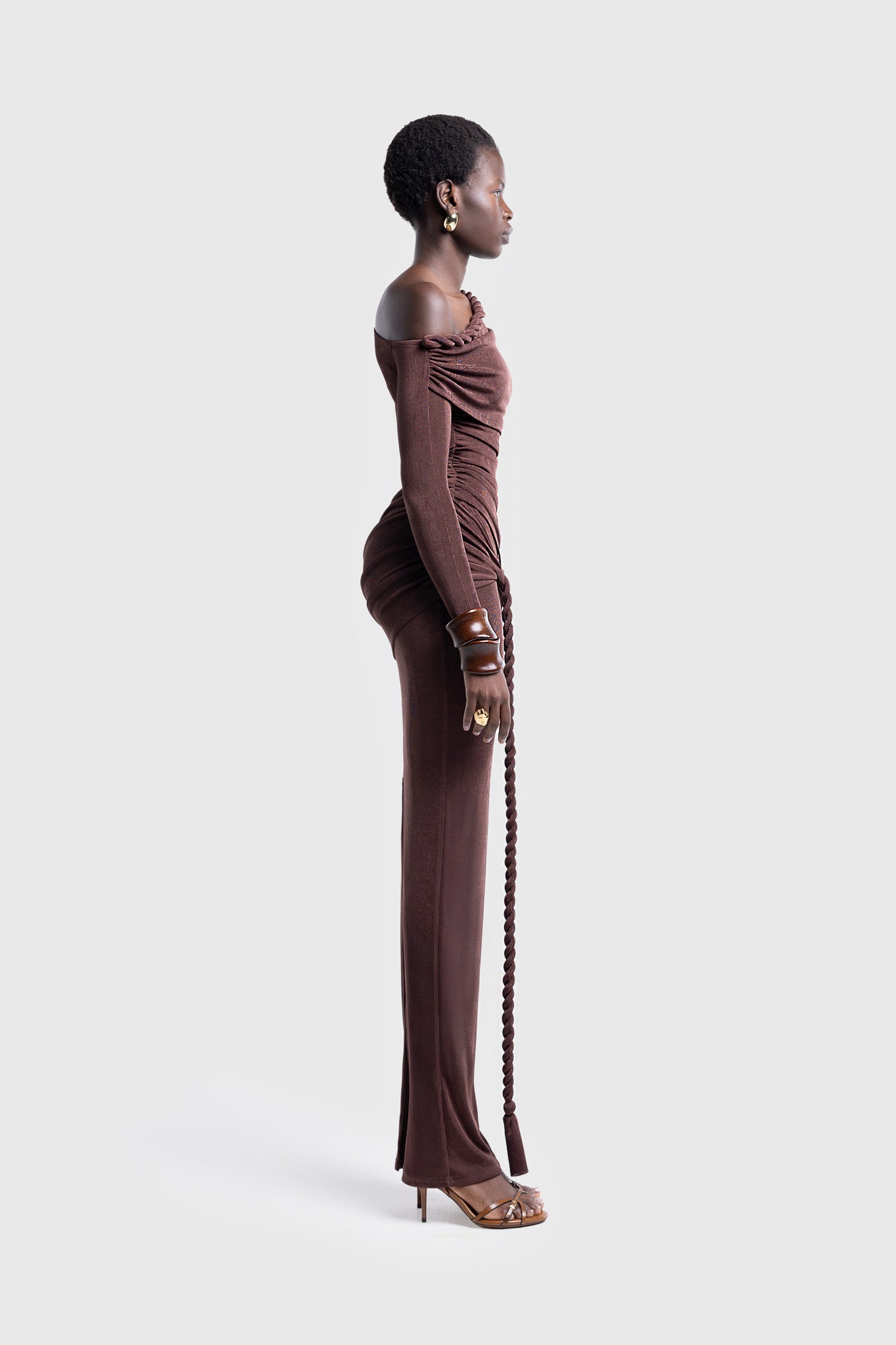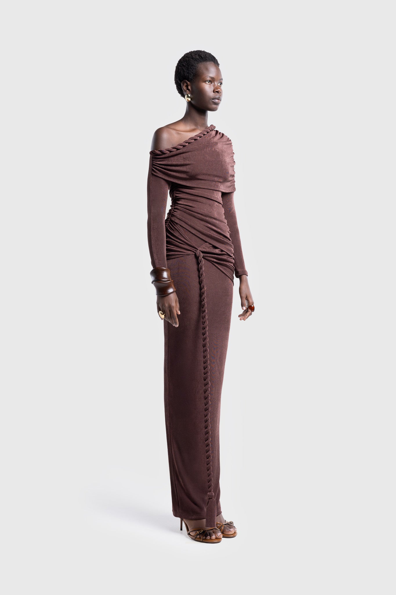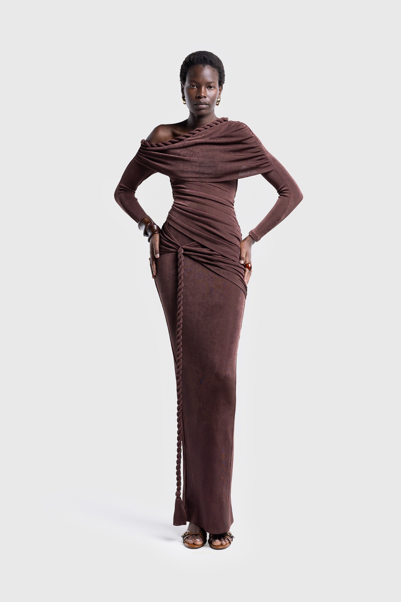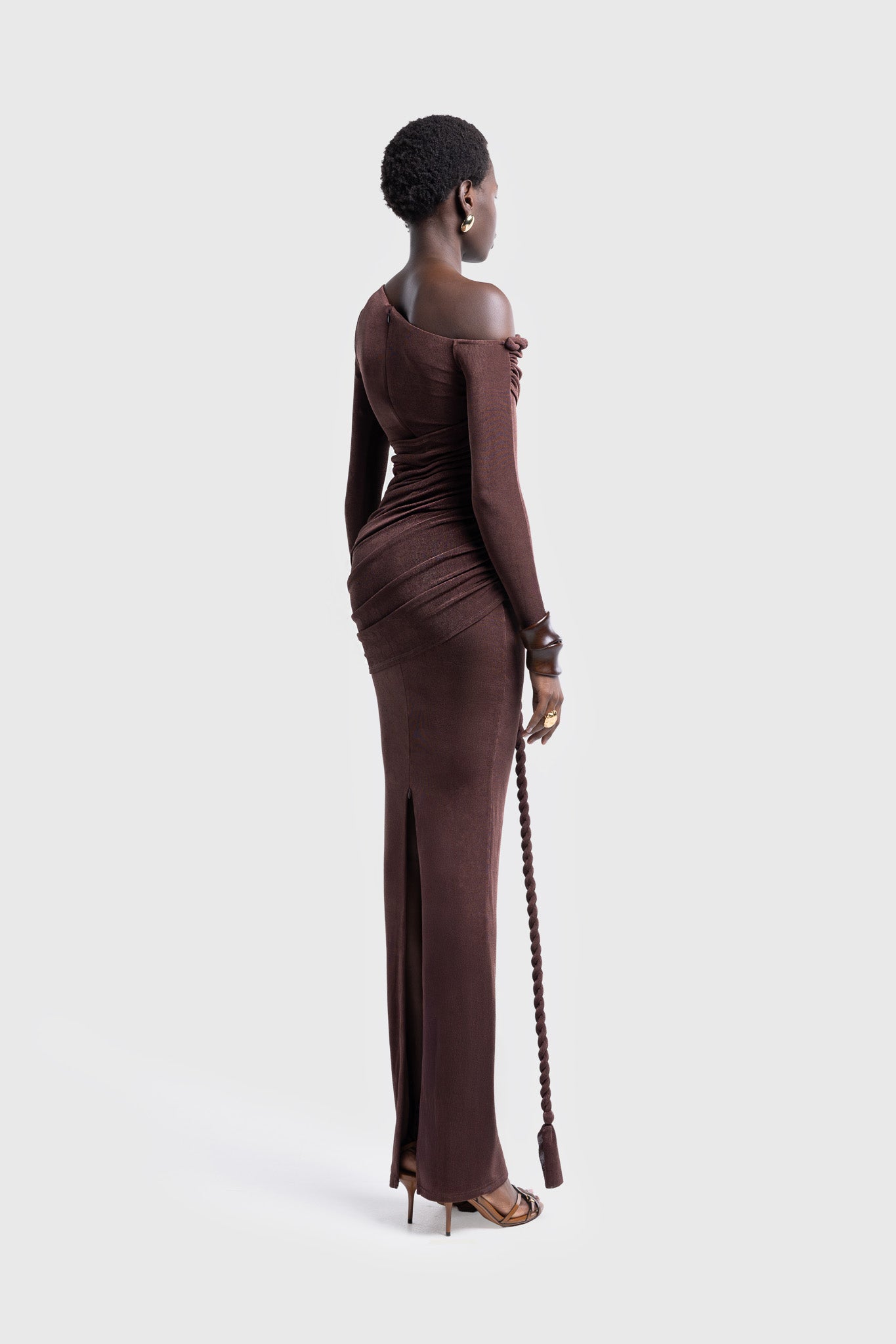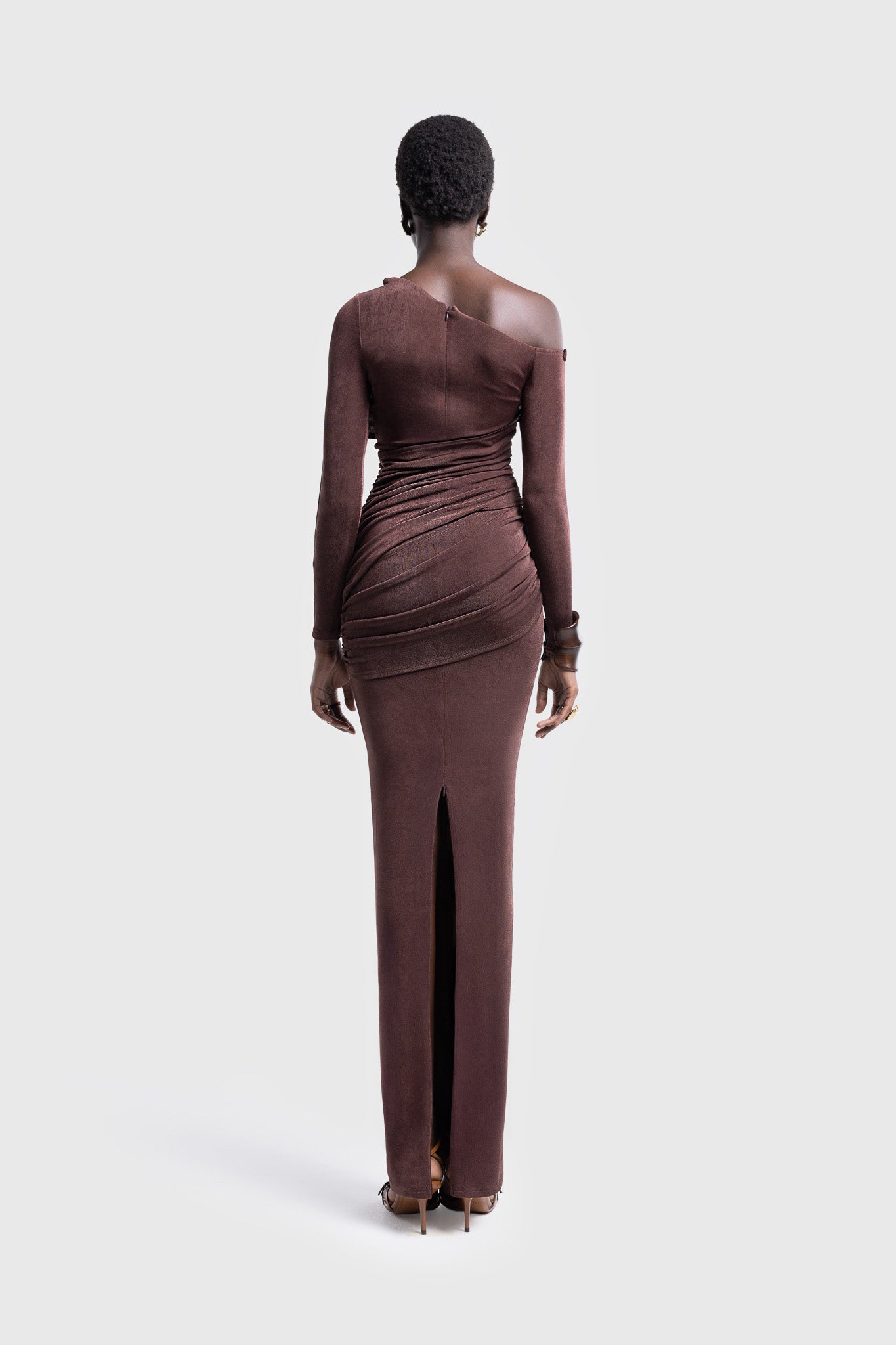 Our most popular viral maxi! The Verella Maxi is made to turn heads!! With it's unique asymmetric design and overlayed ruched panelling, prepare to be complimented on your outfit all night!
